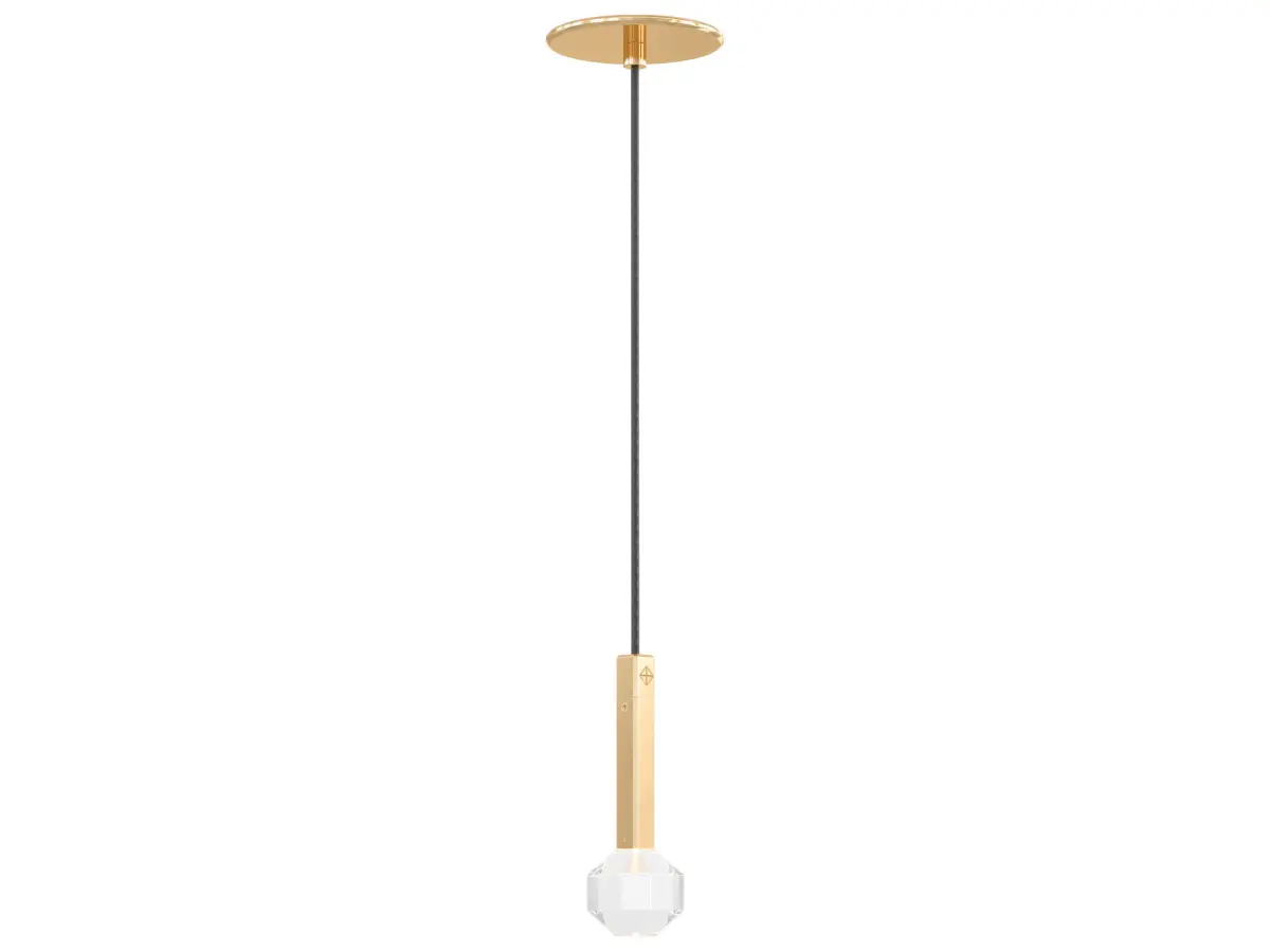 Joulle reimagines the classic crystal chandelier as a network of un-mined earthen stones. A quiet bevel traces both ore and light, contouring the machined aluminum body and the hand-polished cut crystal light source. The resulting form is reminiscent of the gems historically found at the bottom of chandelier silhouettes… and within fabled troves. Comprised of modular elements that quickly lock together, Joulle becomes a never-ending network of sculptural ceiling and wall fixtures.