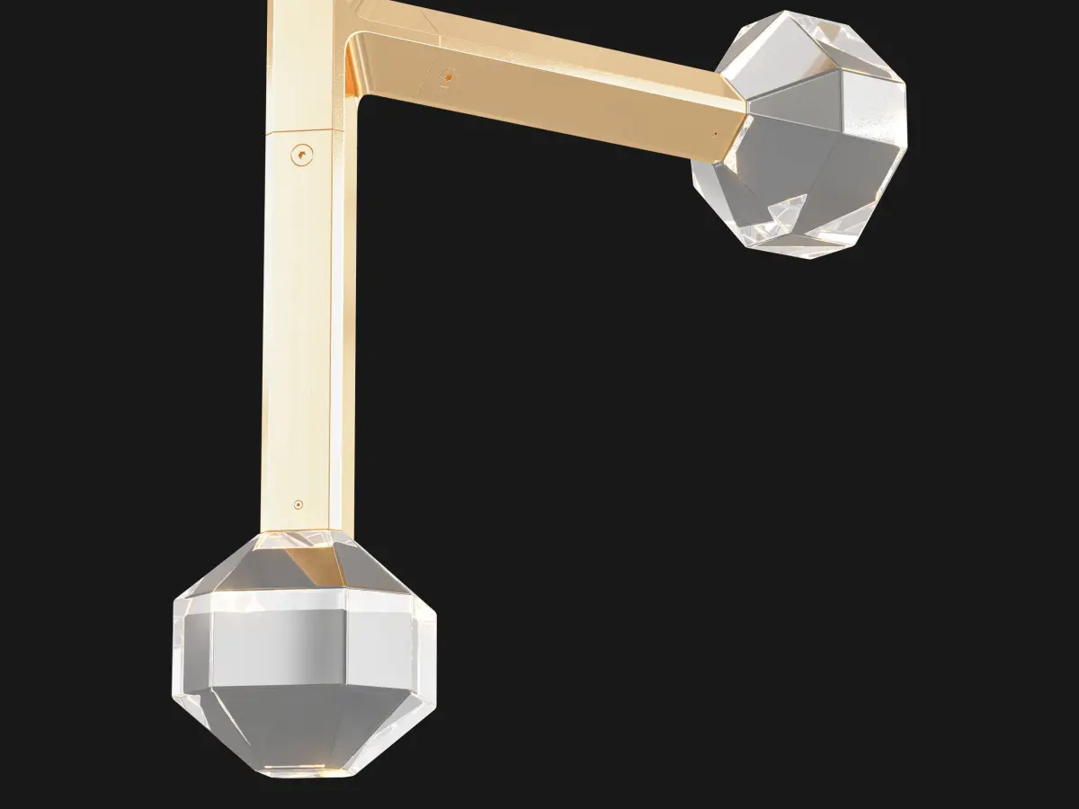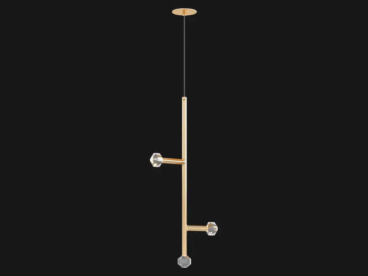 Joulle reimagines the classic crystal chandelier as a network of un-mined earthen stones. A quiet bevel traces both ore and light, contouring the machined aluminum body and the hand-polished cut crystal light source. The resulting form is reminiscent of the gems historically found at the bottom of chandelier silhouettes… and within fabled troves. Comprised of modular elements that quickly lock together, Joulle becomes a never-ending network of sculptural ceiling and wall fixtures.