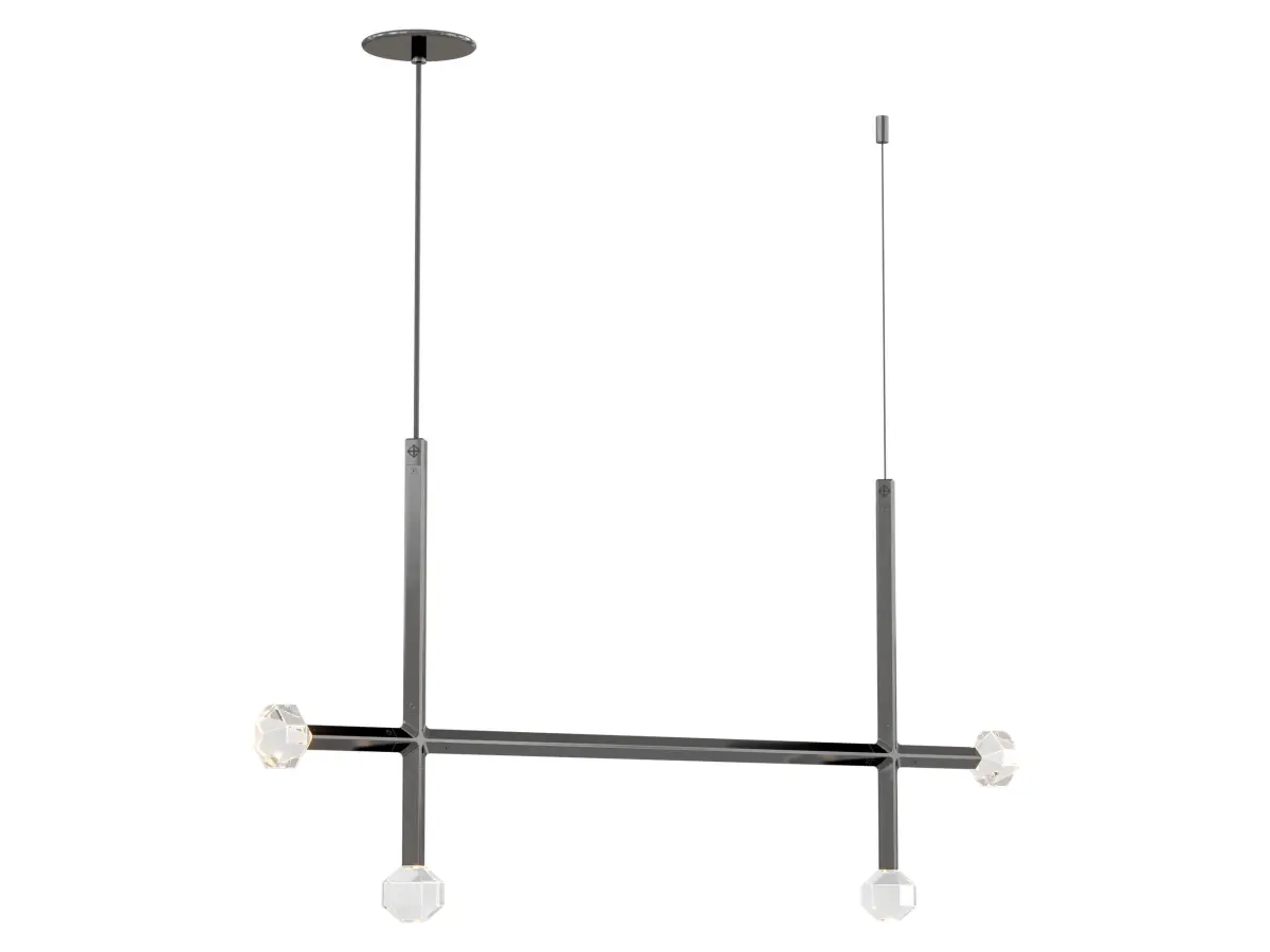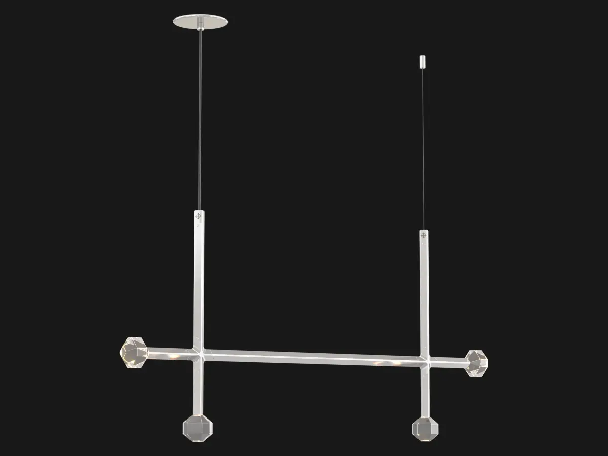 Joulle reimagines the classic crystal chandelier as a network of un-mined earthen stones. A quiet bevel traces both ore and light, contouring the machined aluminum body and the hand-polished cut crystal light source. The resulting form is reminiscent of the gems historically found at the bottom of chandelier silhouettes… and within fabled troves. Comprised of modular elements that quickly lock together, Joulle becomes a never-ending network of sculptural ceiling and wall fixtures.