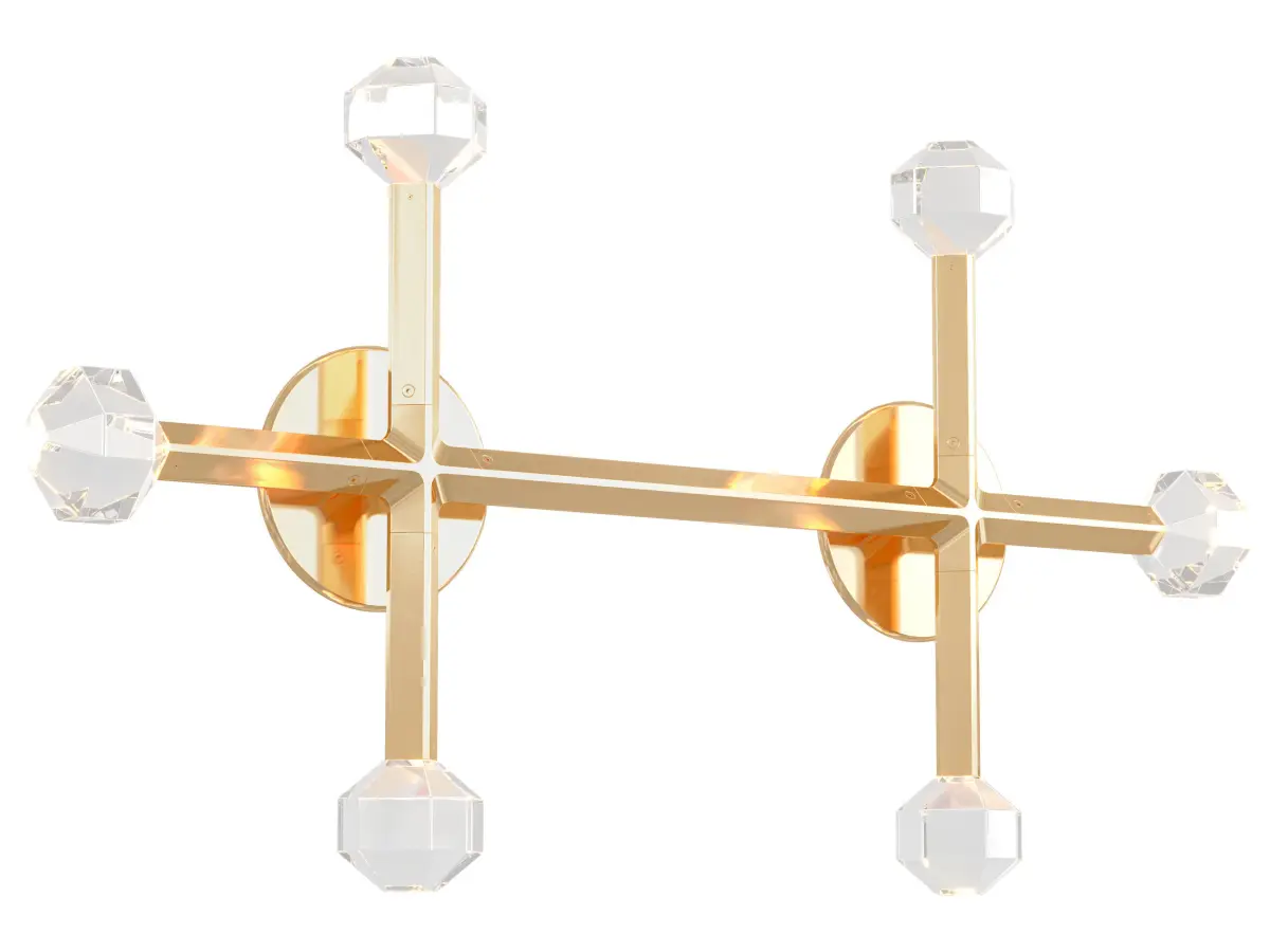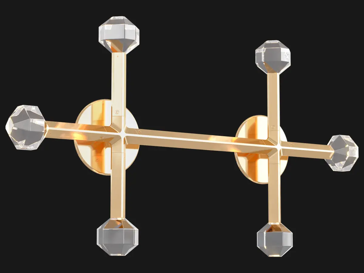 Joulle reimagines the classic crystal chandelier as a network of un-mined earthen stones. A quiet bevel traces both ore and light, contouring the machined aluminum body and the hand-polished cut crystal light source. The resulting form is reminiscent of the gems historically found at the bottom of chandelier silhouettes… and within fabled troves. Comprised of modular elements that quickly lock together, Joulle becomes a never-ending network of sculptural ceiling and wall fixtures.