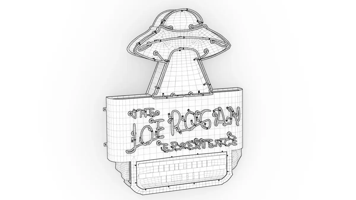 Joe Rogan Experience (JRE) Neon Sign model with PBR materials, based on a semi-lowpoly beveled workflow. Optimized for realism/photoreal scenes (e.g. interior archviz), in some instances also compatible with VR/AR projects, and suitable as a game asset, if desired.