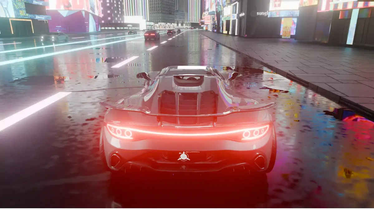 Featuring a sleek rear grille architecture, full-width LED light bar, aggressive diffuser system, and sculpted aerodynamic bodywork, the Raydon delivers a modern hypercar presence optimized for real-time rendering.