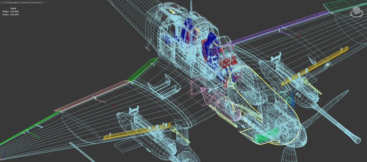 Fully animated inside and out; including all cockpit switches, knobs, dial indicators and controls. Correctly animated exterior: flaps, ailerons, undercarriage, elevators, rudder, trim-tabs, prop-pitch, etc.