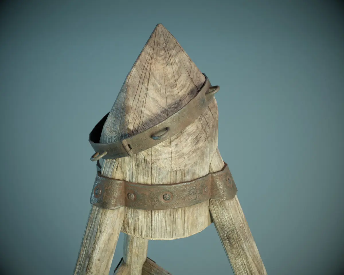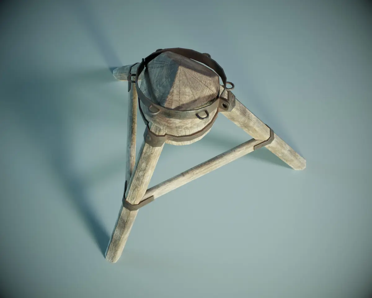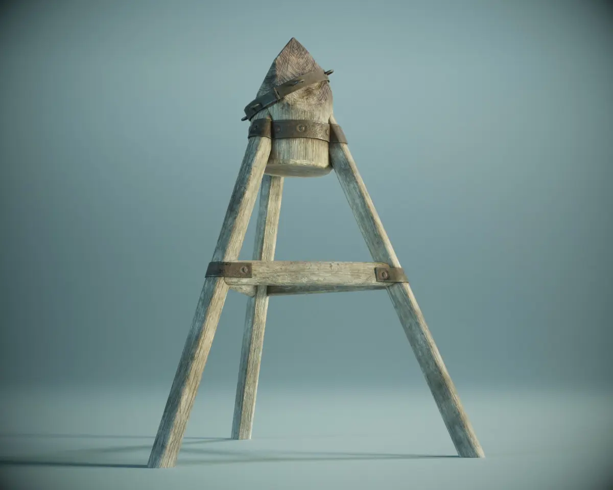 Low-poly PBR Judas Cradle model intended for game/realtime/background use.