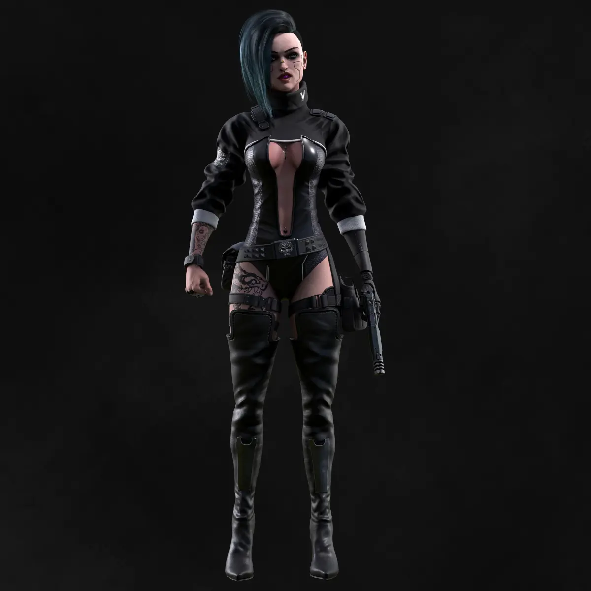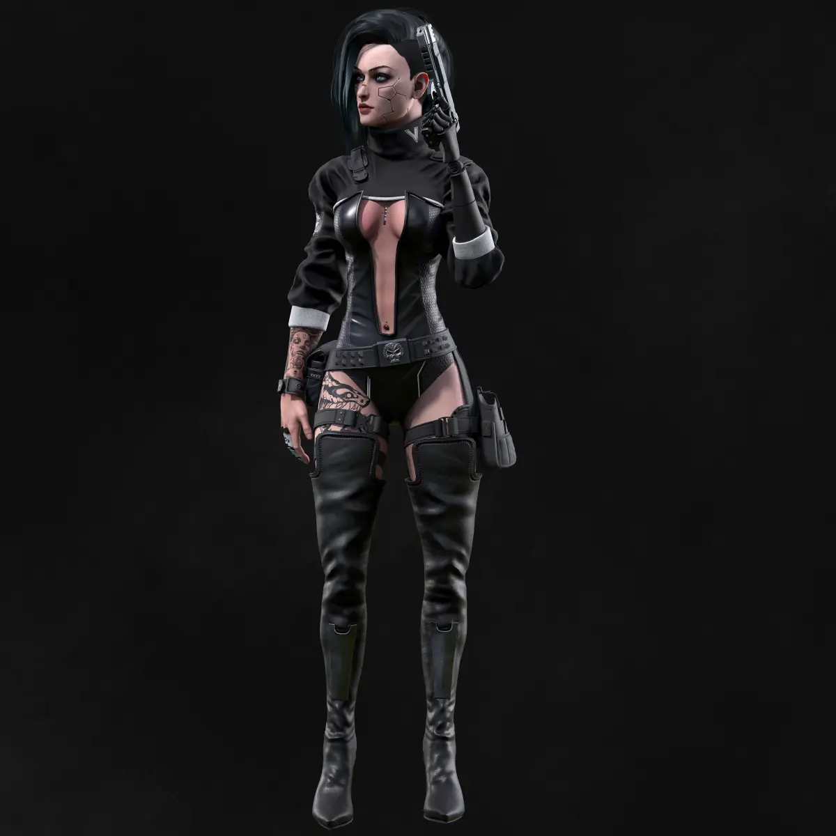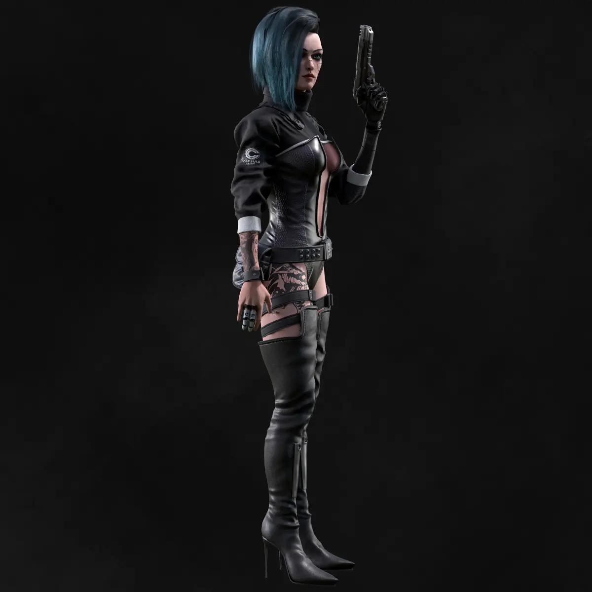 11 Texture sets - Shoes, Body, Arms, Cloth, Belts, Face, Hair, HairCup, Brows_Lashes, Eyes, Gun.