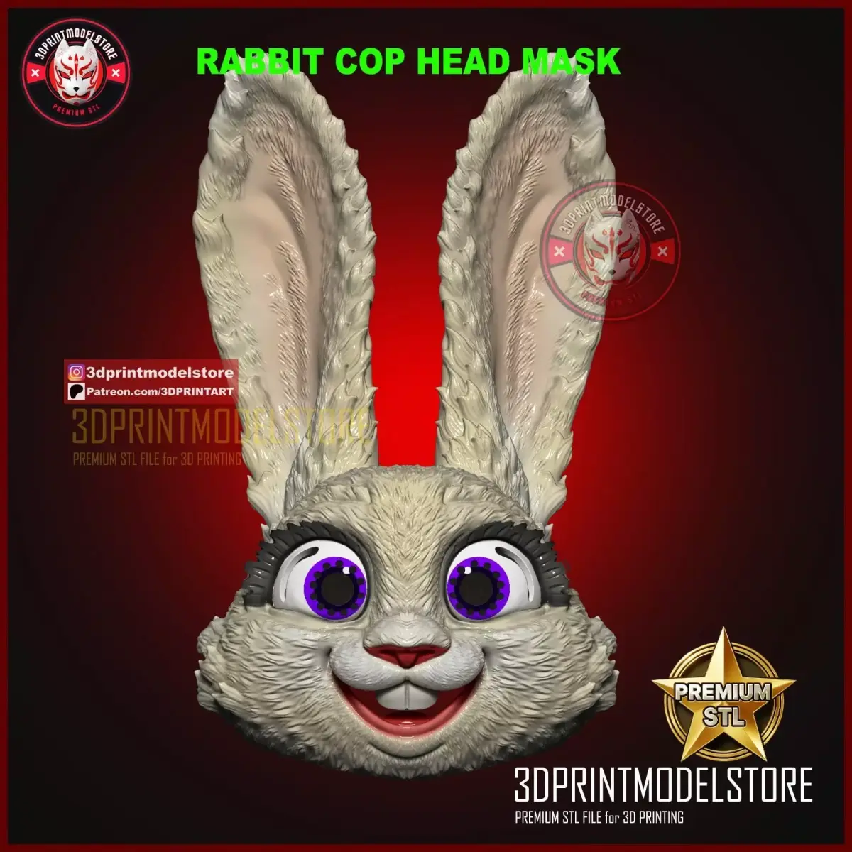 Judy Rabbit Cop Head Mask - Zootopia Cosplay Props