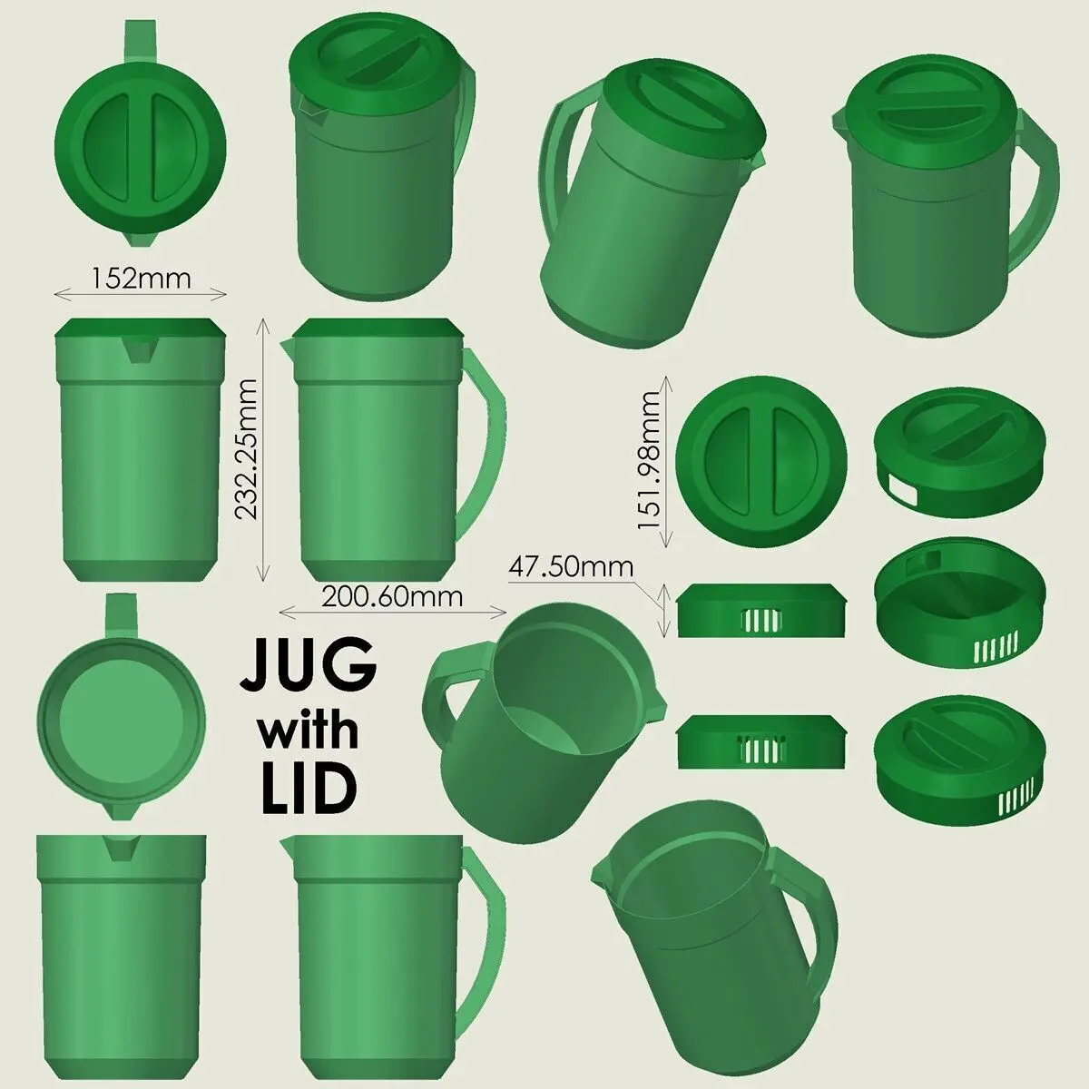 3D printable Jug with Removable Lid model with separate print files for the Jug and the Lid.