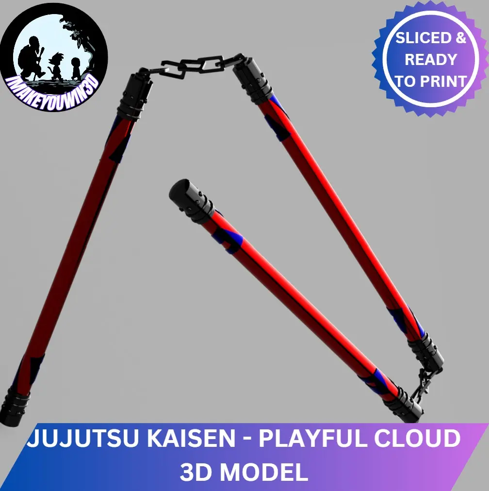 Bring the excitement of Jujutsu Kaisen to life with this detailed 3D model of the Playful Cloud 3 section staff— a key special-grade cursed tool in the anime, especially in Toji Fushiguro’s thrilling battle against Dagon! Perfect for cosplayers, collectors, and anime fans, this replica is made to capture every intense moment and the striking design of the original weapon, designed to amplify the user's strength with its cursed energy.
