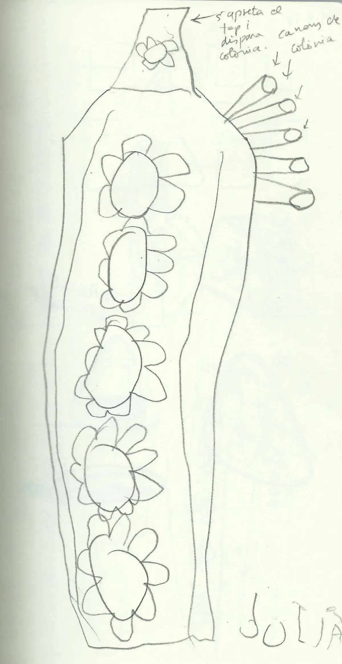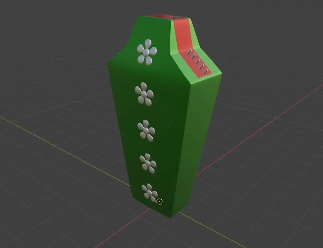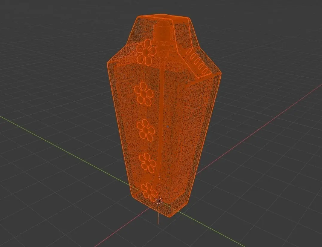 Perfume bottle with flower shapes over front face. It was modeled from an original drawing made by my son when he was 5 years old. The concept of the bottle is as follows: external enclosure made with glass of whatever other material. There is a push button covered by a rubber surface. When you press, you actuate over the pump and the perfume sprays out from five pipes.The 3d model doesn’t include materials, just simple shader to have a general idea. Please try on your own to find the best combination for your particular application. I add some renders showing different possibilities. Hope you enjoy it!!
