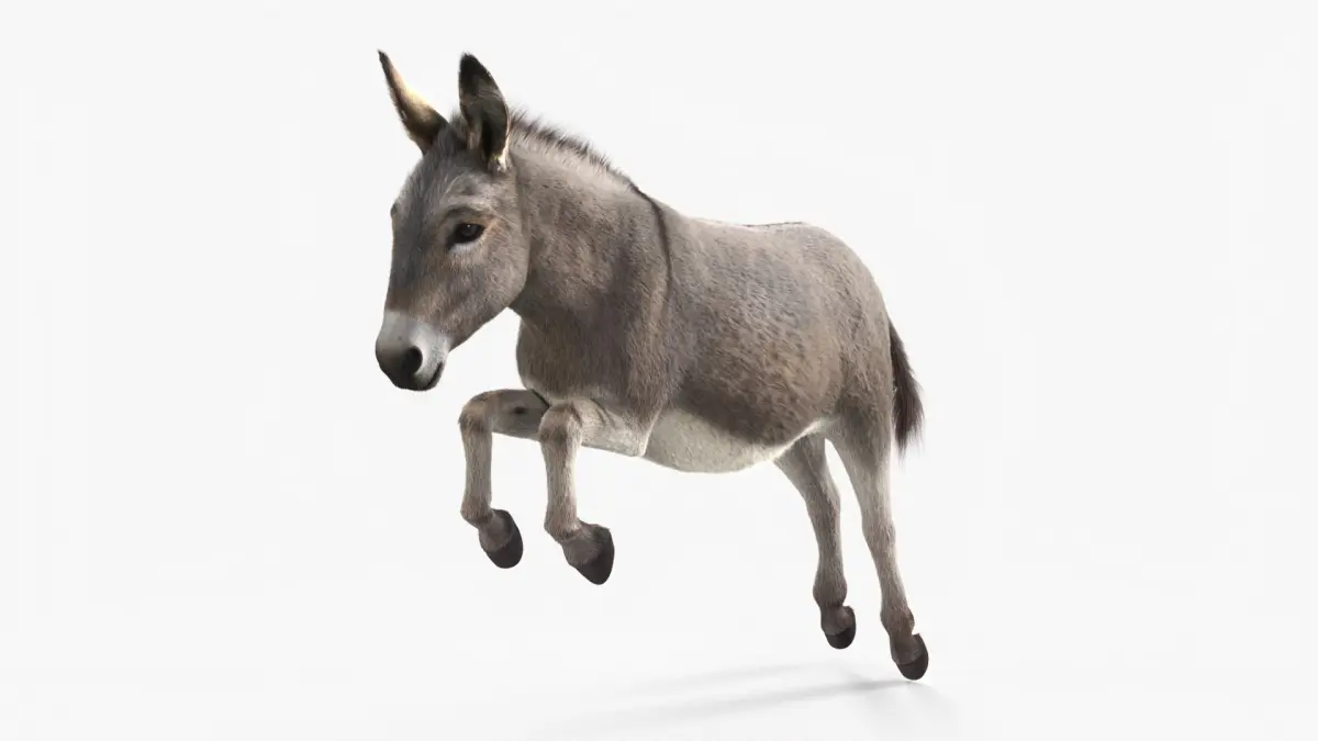 Jumping Farm Donkey Fur is a three-dimensional model of donkey, showcasing the animal in a lifelike manner, perfect for both educational and decorative purposes.