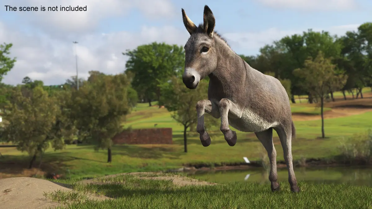 Jumping Farm Donkey Fur is a high quality, photo real 3d model that will enhance detail and realism to any of your rendering projects. The model has a fully textured, detailed design that allows for close-up renders, and was originally modeled in 3ds Max 2020 and rendered with V-Ray. Renders have no postprocessing!