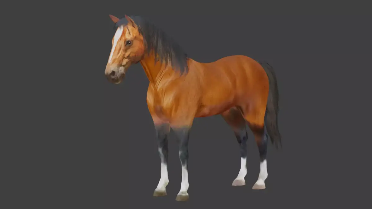 A high-quality brown horse 3D model featuring clean** PBR textures*, detailed **anatomy* (including teeth, mouth, and tongue), and smooth animations for walking, running and jumping over a fence. Fully rigged and ready for use in games, films, VR, and simulations. Comes with multiple file formats and all necessary textures for easy integration into any workflow.