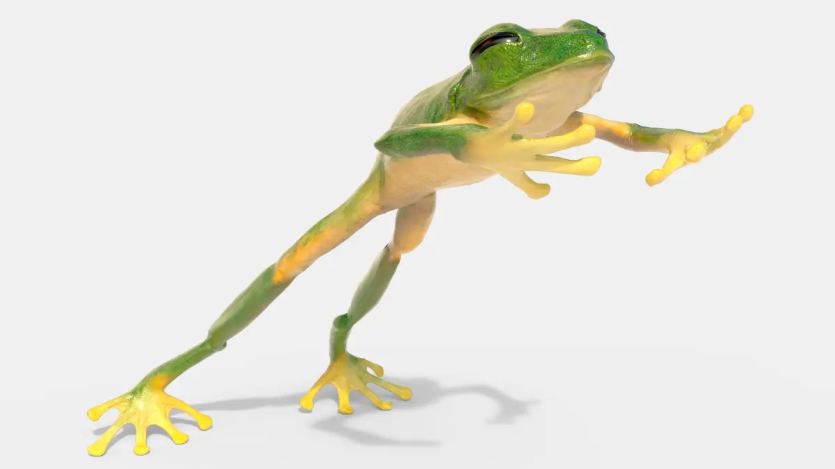 Jumping Tree Frog Animated Rigged for Blender is a three-dimensional model of small arboreal amphibian known for its adhesive toe pads and vivid coloration.