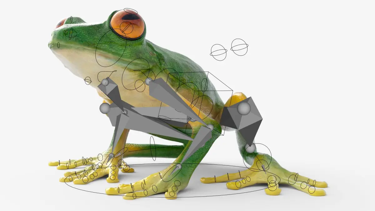 Jumping Tree Frog Animated Rigged for Blender is fully rigged and is ready to be animated in Blender. You can easily position it the way you need or animate it the way your project requires. See the screenshots to get an idea of how rigging works. The pose of the model on the render images is an example and can be recreated using rig, it is not initially included into the product.