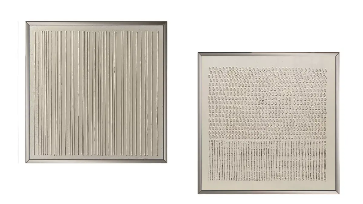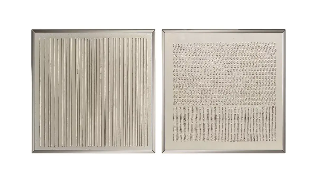 Artist June WeiPaintings ABAS195 and ABAS248In the scene the paintings are of the following sizes:76x763 frame materials