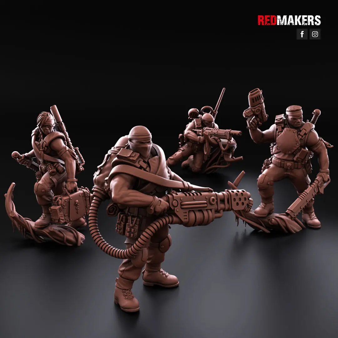 Jungle Fighters command squad consisting of 4 units, 2 of which have alternative body and various weapon options; has pre-supported files (SLA).