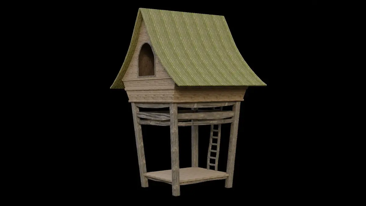- game-ready model of jungle hut.