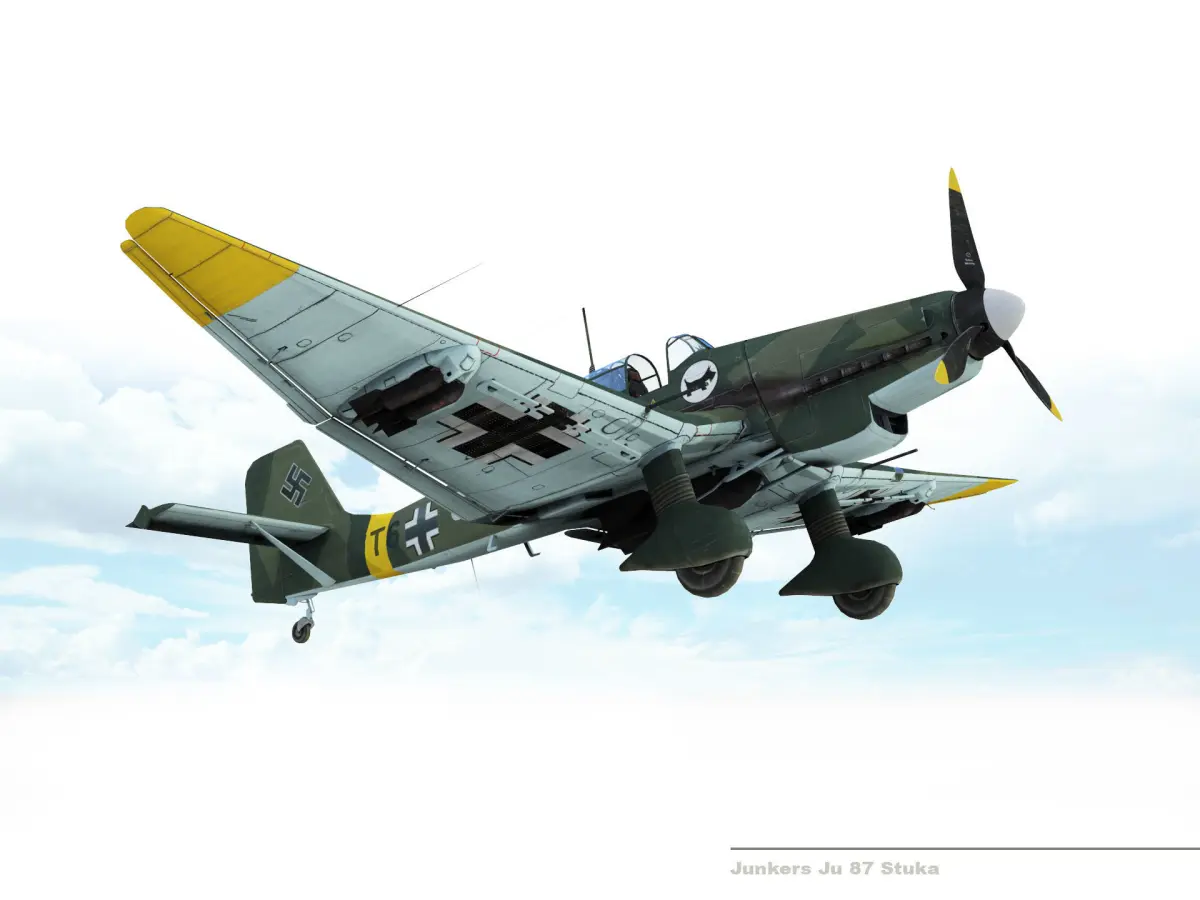 The Junkers Ju 87 or Stuka (from Sturzkampfflugzeug) was a German dive bomber and ground-attack aircraft. Designed by Hermann Pohlmann, it first flew in 1935. The Ju 87 made its combat debut in 1937 with the Luftwaffe's Condor Legion during the Spanish Civil War and served the Axis forces in World War II.