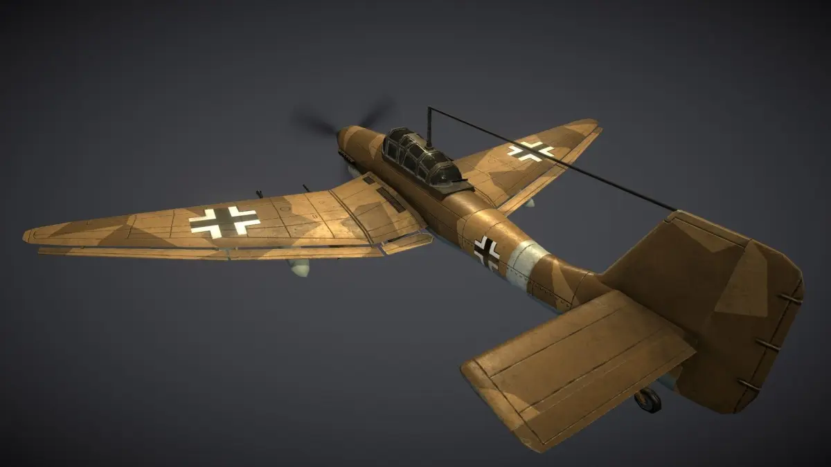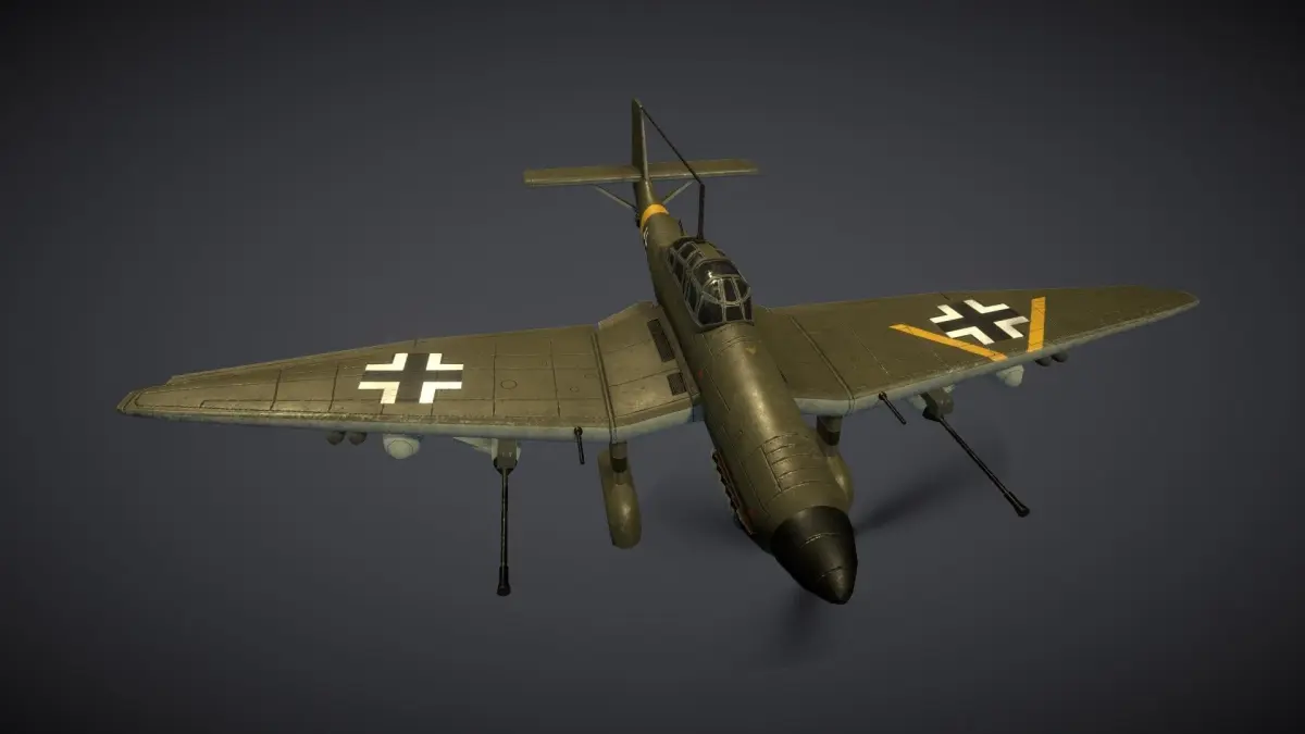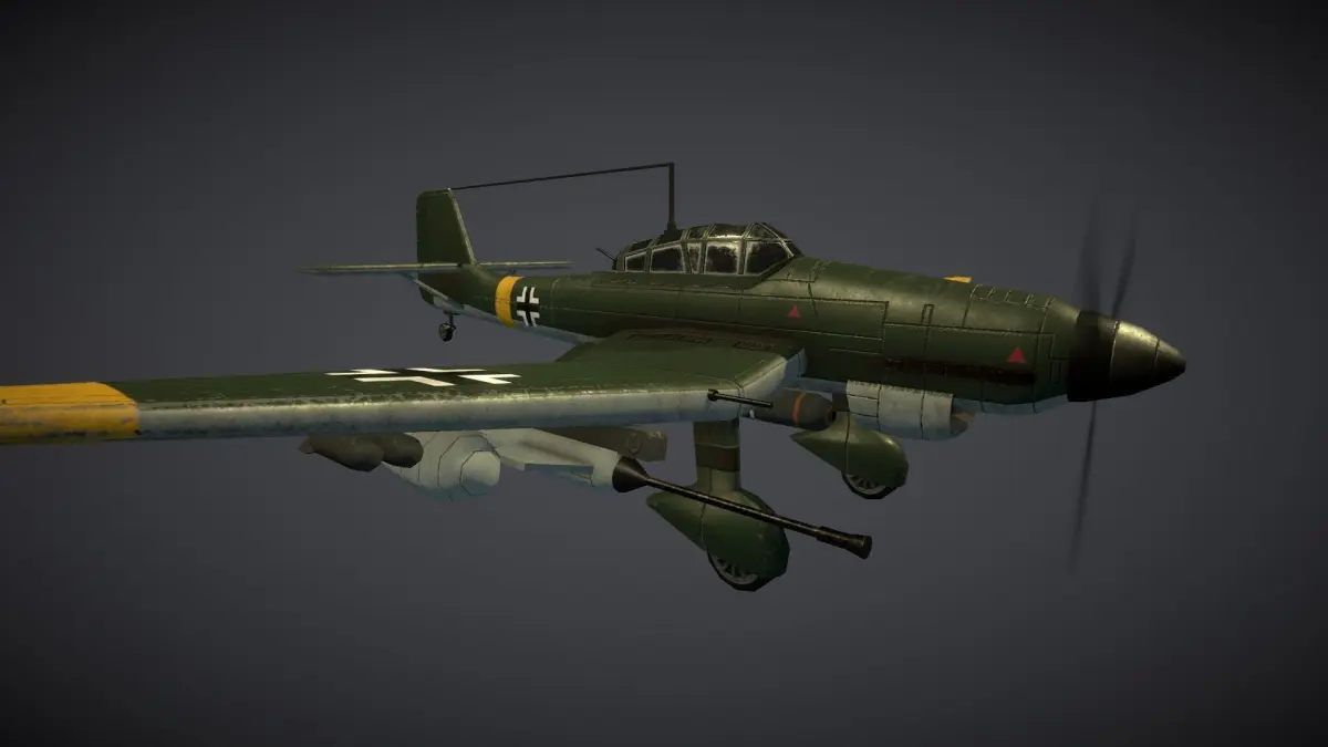 Low Poly model with PBR textures of the World-War 2 era German dive-bomber and ground attack aircraft: the Junkers JU 87.