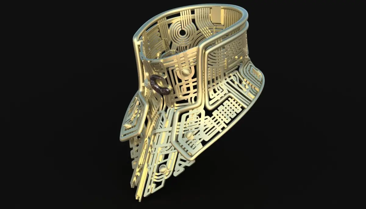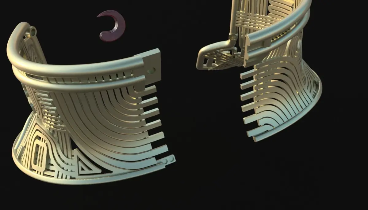 This is a fan made replica from the Balem's infamous collar. This is a fan art digital model that is completely 3D printable. It will work with 8 disc shaped magnets sized 5mm diameter x 2mm depth and 2 additional smaller magnets 3mm diameter and 1mm depth. The model was manually designed in blender from images obtained from the web.