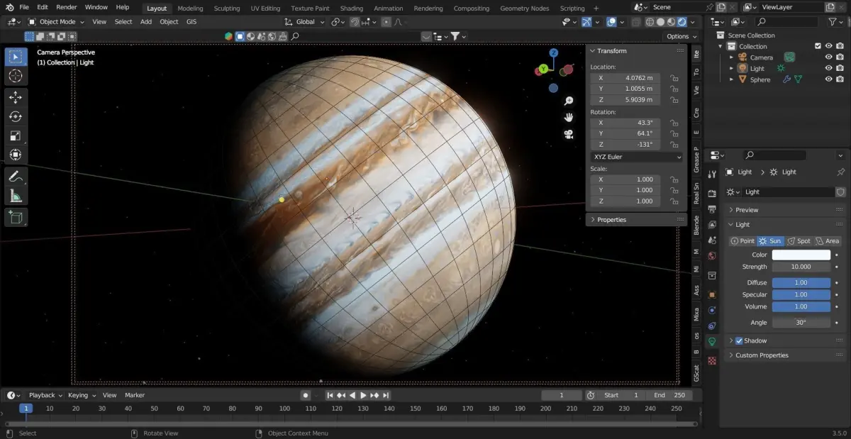 A 3D model of Jupitor designed for space videos and documentaries would be a highly detailed and accurate representation of the planet's surface, terrain, and features. The model would be built using modern techniques and software tools, and would incorporate high-quality 8K textures and physically-based rendering (PBR) materials to create a realistic and immersive experience for viewers.