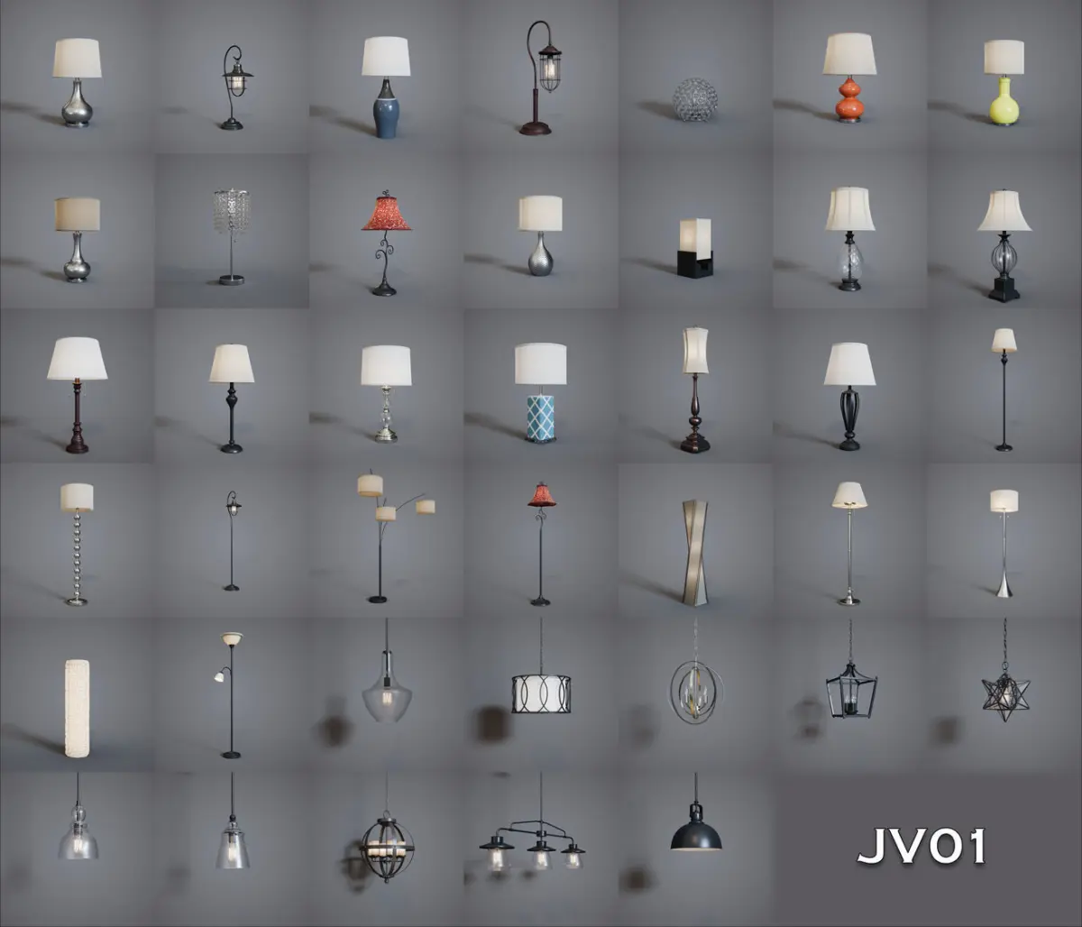 JV01 Collection includes 40 lamp models for archviz. The collection contains models, textures and materials, ready to be placed to speed up your projects.
