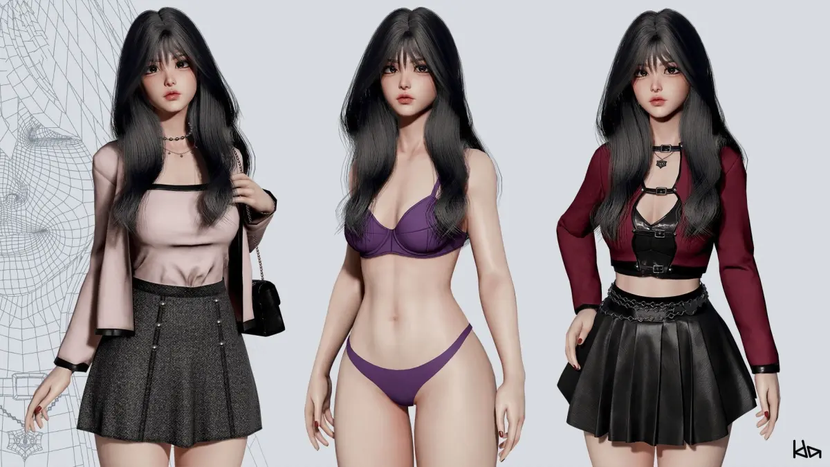This model has 3 outfits: Performance, Casual and Lingerie. It also has nude version with uncensored textures.
