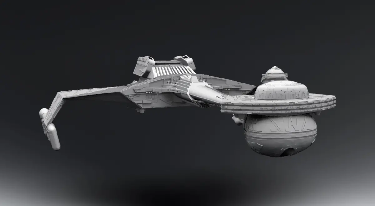 Detailed scale model of K'Tinga Class Heavy cruiser.