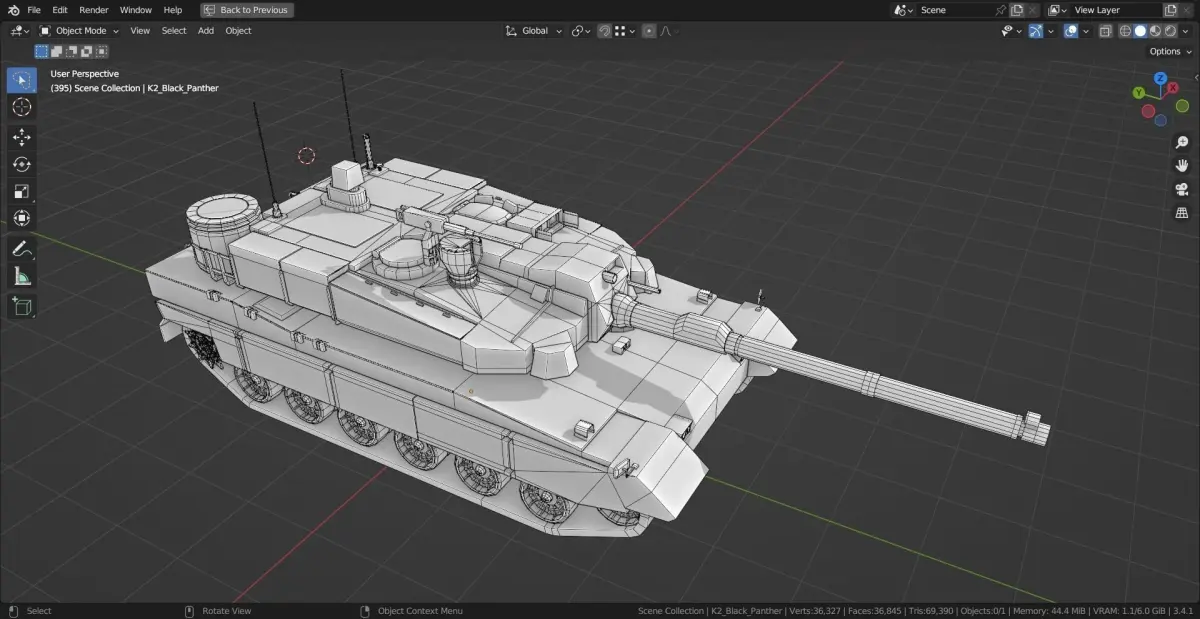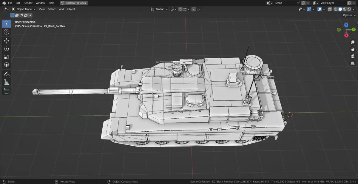 Model is made in Blender 3.5. it is a base mesh model. Made to scale, Blender units. Part of a larger collection of base mesh tanks.