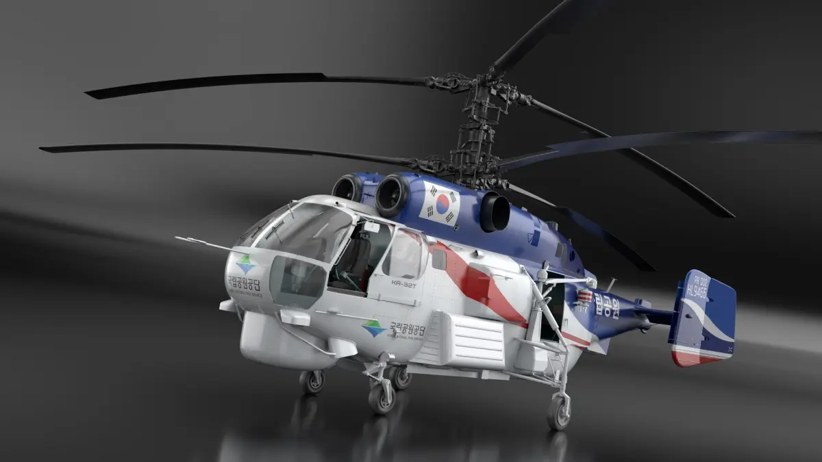 KA-32T Helicopter Operated South Korea with Interior Rigged for Cinema 4D is a 3d model of a versatile helicopter, known for its unique coaxial rotor system and adaptability in a variety of roles.