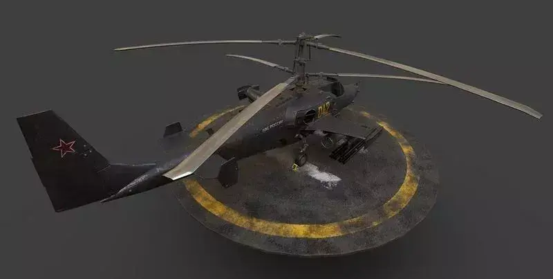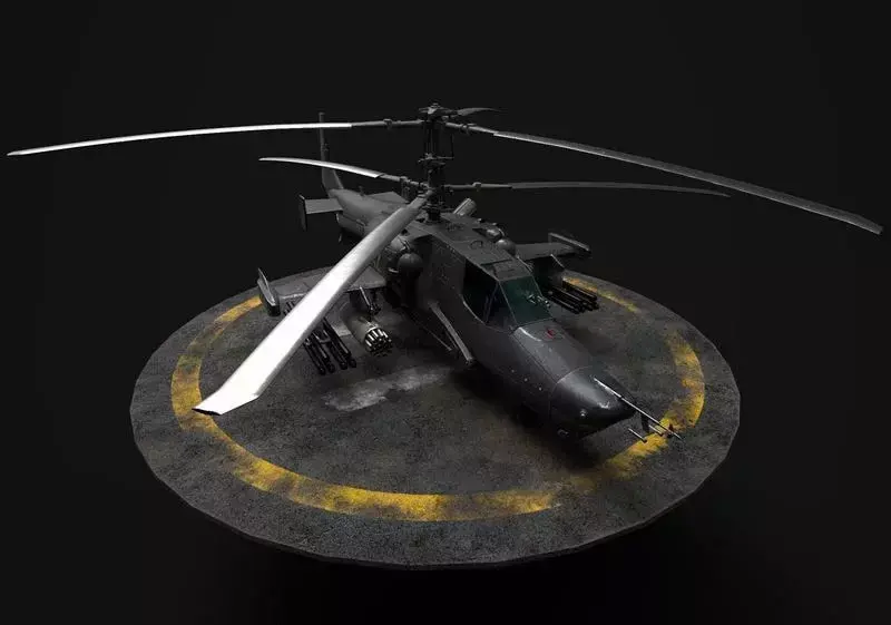 Highly detailed 3D model of the Russian Kamov Ka-50 Black Shark attack helicopter. This asset is optimized for use in real-time applications like games, simulators, or animations. It includes detailed rotor blades, landing gear, weapon systems, and a realistic camouflage texture.