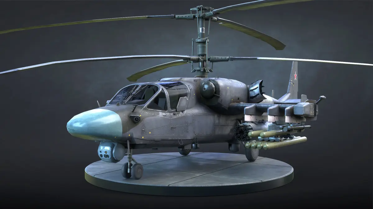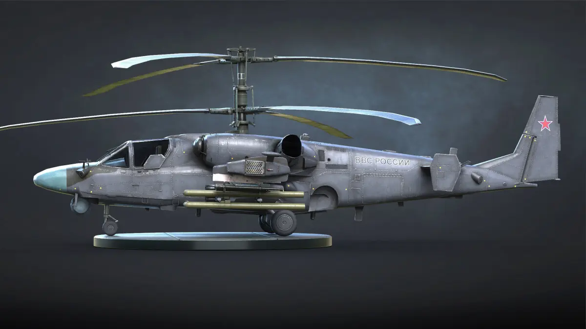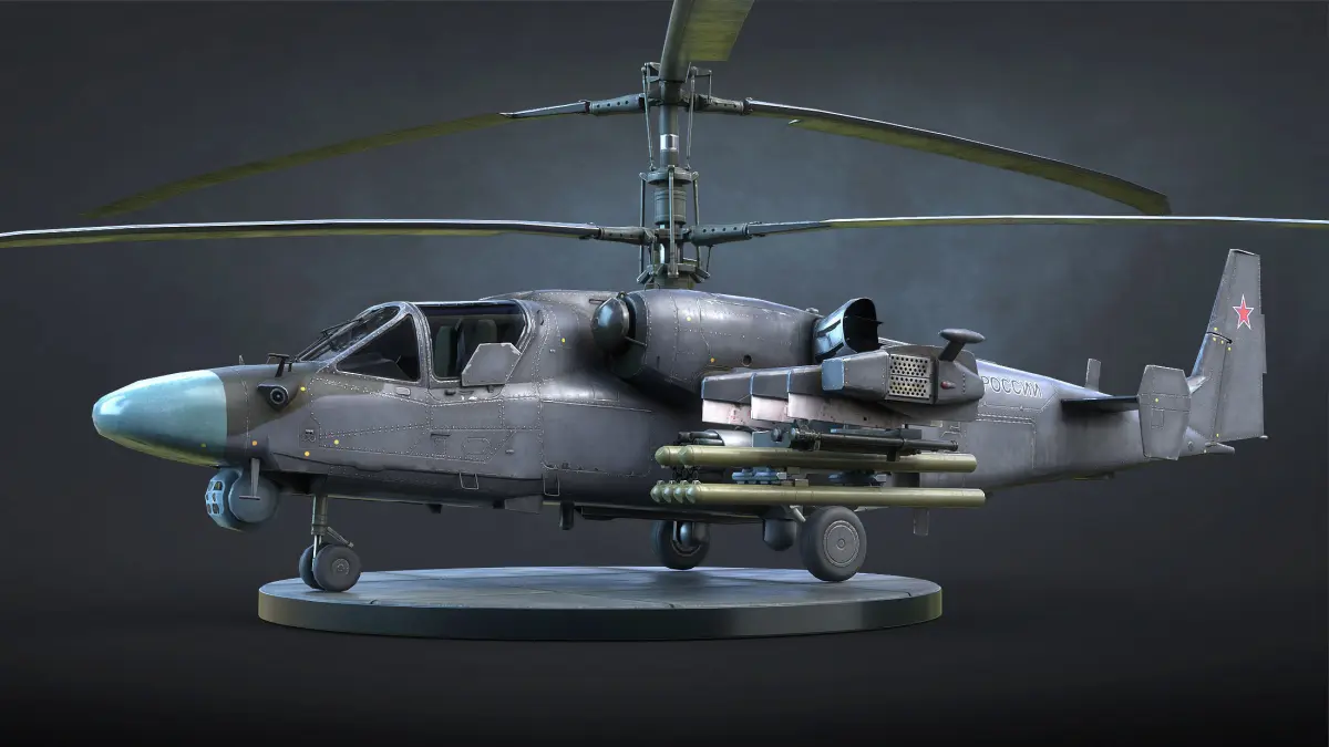 Game low-poly 3d-model of Russian attack helicopter Ka-52 (Kamov).