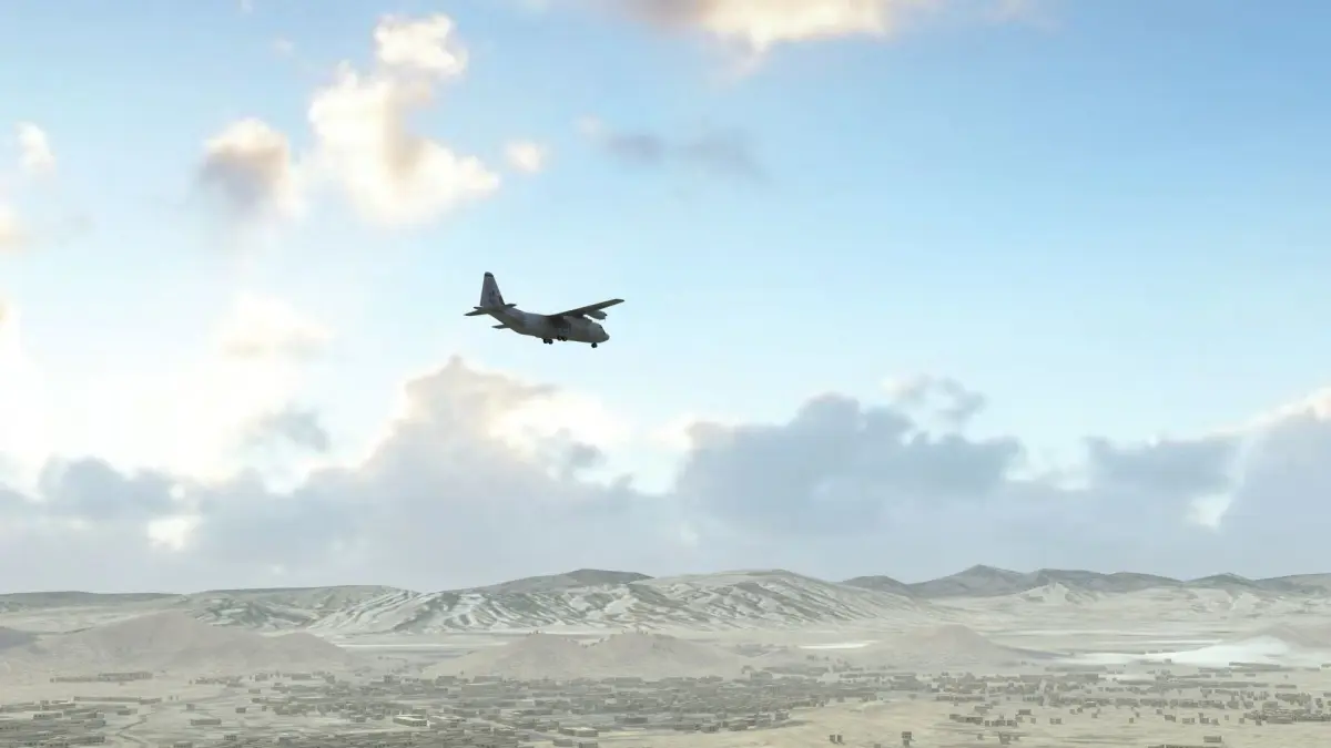 Separated mesh nodes and materials for- Buildings, and Roofs. C130J aircraft also included. Sky texture not included.