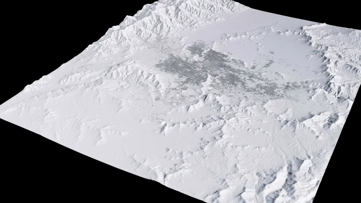 Originally created in Houdini 19. Final images rendered in Houdini. Data source is ASTER GDEM V3, ASTER WATER V1, Open Streep Maps 2022, Copernicus Sentinel 2016.