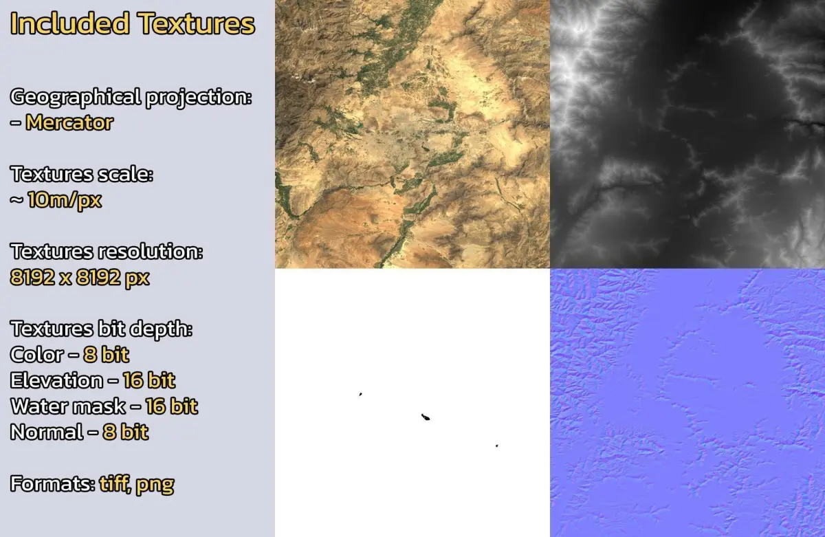 Warning: minor clouds/artifacts may be present on the diffuse color satellite texture due to the nature of the dataset. Check product images.