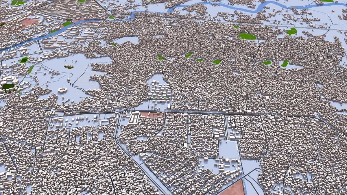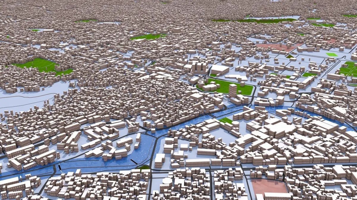 Based on August 2021 GIS data. -Clean scene with UV mapped and textured buildings. Clean Hierarchy with grouped objects according to map type, properly named materials with textures. Fast loading and rendering scene. All the objects are properly assigned with materials and textures. The scene is built in a simple way, and all are poly objects. You can easily change the textures of each object including the buildings. Buildings are assigned with 11 textures and you can change them easily. Trees are not included in the main scene, kindly merge the tree file. Curve data not included in the main scene, separate file provided. Extra details including bridge type, tunnels, pipeline, power lines, waterways, boundary etc are included in separate files. Kindly check the texture folder, you will be surprised! Download the preview render file first and check the details, especially the area covered. Check all the preview images. The city is made in c4d, you will get exactly the same render in c4d. However due to exporting limitations some textures may not render as the same in other 3d formats. I tried my best to include all the textures (additional textures also provided) in a separate file. You can reassign the textures easily. The buildings will be the same across all the formats. It is possible to provide 3d terrain but you have to pay. Contact me for any doubts. - This scene contains details of buildings, roads, land details, area details, airport, railway and water details. - Clean scene with properly grouped elements. All objects are properly arranged and added with proper name and materials. For user convenience the scene has proper hierarchy with layers, materials and groups. - Buildings are extracted from real world data. There are random buildings added to some areas where real world data is partially available (missing height details). - Scene include following groups/objects (depending on the original data some parts may be missing) -AERIALWAY -AEROWAY aerodrome apron taxiway terminal -BARRIER -BOUNDARY -BUILDING random apartments farm hotel house detached residential dormitory terrace houseboat bungalow static_caravan cabin commercial office industrial retail etc. -HIGHWAY motorway trunk primary secondary tertiary unclassified residential motorway_link trunk_link primary_link secondary_link tertiary_link living_street service pedestrian track bus_guideway escape raceway road Paths footway bridleway steps path cycleway construction proposed rest_area -HISTORIC -LAND USE commercial construction industrial residential retail -MAN MADE bridge -MILITARY -NATURAL wood tree_row tree scrub heath moor grassland -PLACE -RAILWAY abandoned construction disused funicular light_rail miniature monorail narrow_gauge preserved rail subway tram -TOURISM -WATERWAY river riverbank stream wadi drystream canal drain ditch fairway dock boatyard dam weir stream_end waterfall lock_gate Parking amenity healthcare etc You can easily hide any layer/groups for better visualization. Due to small size and minimum details this scene can be easily loaded. Materials can easily be changed and altered. Adding texture is easy, thanks to unique materials for each sections. Contains procedural textures which is not exported in FBX,OBJ,3ds etc