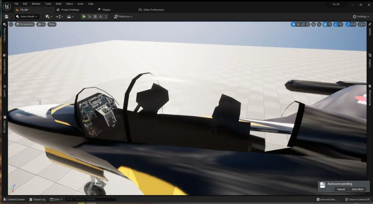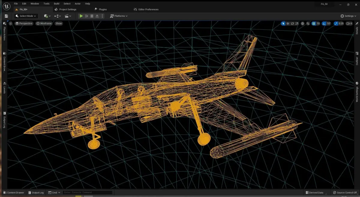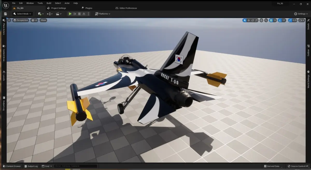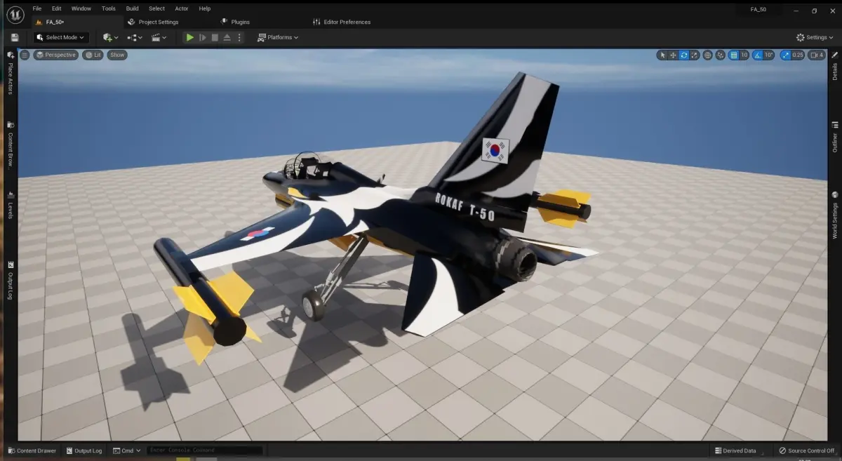 Republic of Korea Air Force (RoKAF) T-50 Golden Eagle (The T-50 LIFT is called the A-50 by the RoKAF.) Trainer rendered in Unreal Engine 5.0.3.Ready for game, VR / AR development.Included simple cockpit with texture.All of the animated parts are seperated.