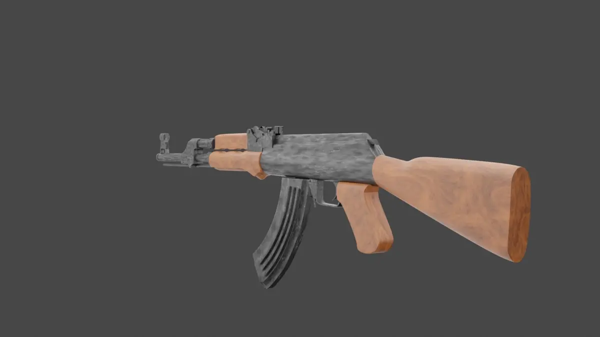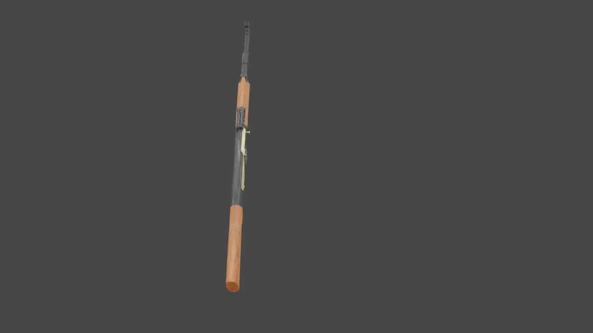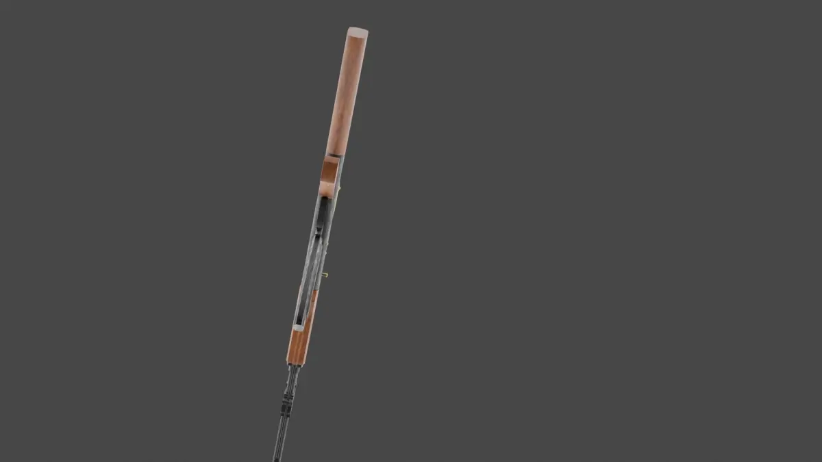 I used subdivison surface for hight quality meshtextures:1.Noise texture for metallic and wooden partColors:1.ColorRamp for creating wooden shape in wooden parts that is conected to shader in color partNoise texture details: Scale = 2.5, detail = 11.8, Roughness = 0.817,Distortion = 1.8ColorRamp detail: pos = 0.3 for wooden part, pos = 0.536 for metallic part