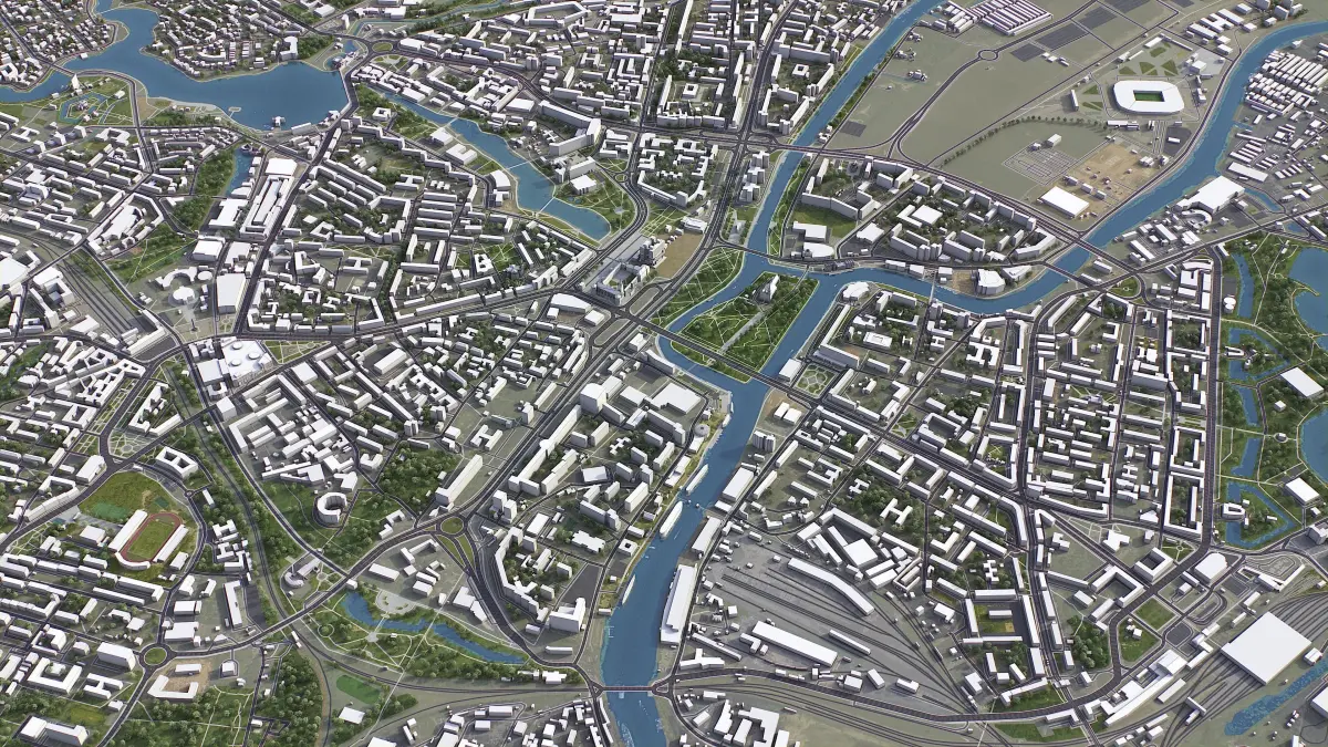 - Full city extents up to 100 x 100 km — or crop to the area of interest for better format compability and scene performance