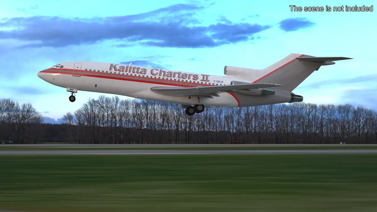 Kalitta Charters utilizes the 727 primarily for cargo and charter services, catering to a range of clients with diverse transportation needs.This model features detailed exterior components, including the iconic tri-jet engine configuration, streamlined body, and distinct tail design. The aircraft's graceful wings and landing gear are carefully crafted to capture its authentic look. Its realistic textures and accurate scale enhance its appearance for visual projects.