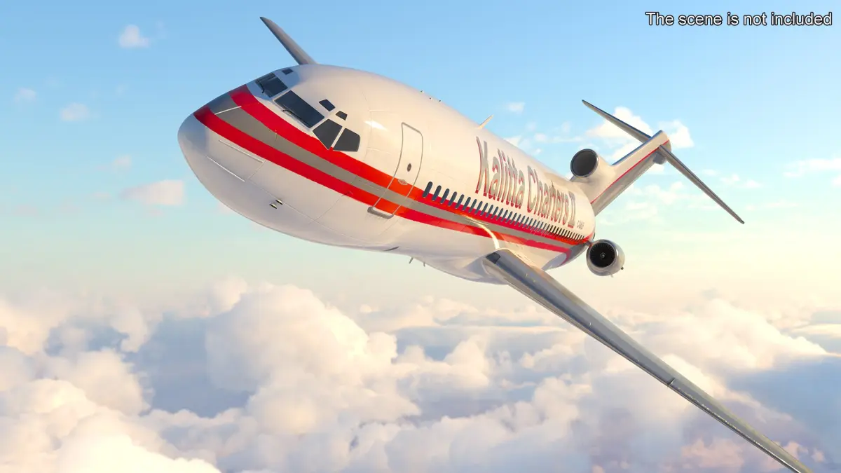 Kalitta Charters Boeing 727 Rigged for Cinema 4D is a 3d model of narrow-body, three-engine jet airliner known for its versatility and ability to operate from shorter runways.