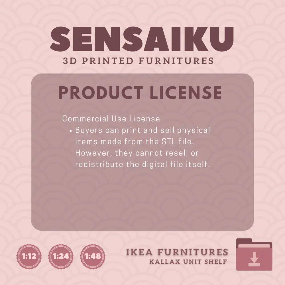 Commercial Use LicenseBuyers can print and sell physical items made from the STL file. However, they cannot resell or redistribute the digital file itself.