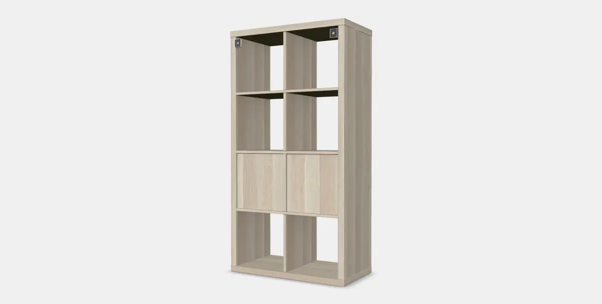Bring your project to life with the KALLAX Shelving unit with doors 5, designed to deliver an exact representation of the original object. This model features top-tier polygonal accuracy, complete with all materials and textures applied. Perfect for both product visualization and animation workflows, this asset promises to integrate smoothly with your existing pipeline.