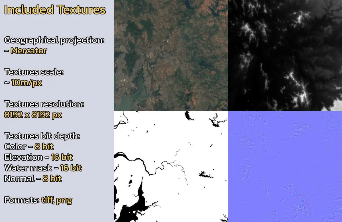 - Textures resolution: ~10m/px