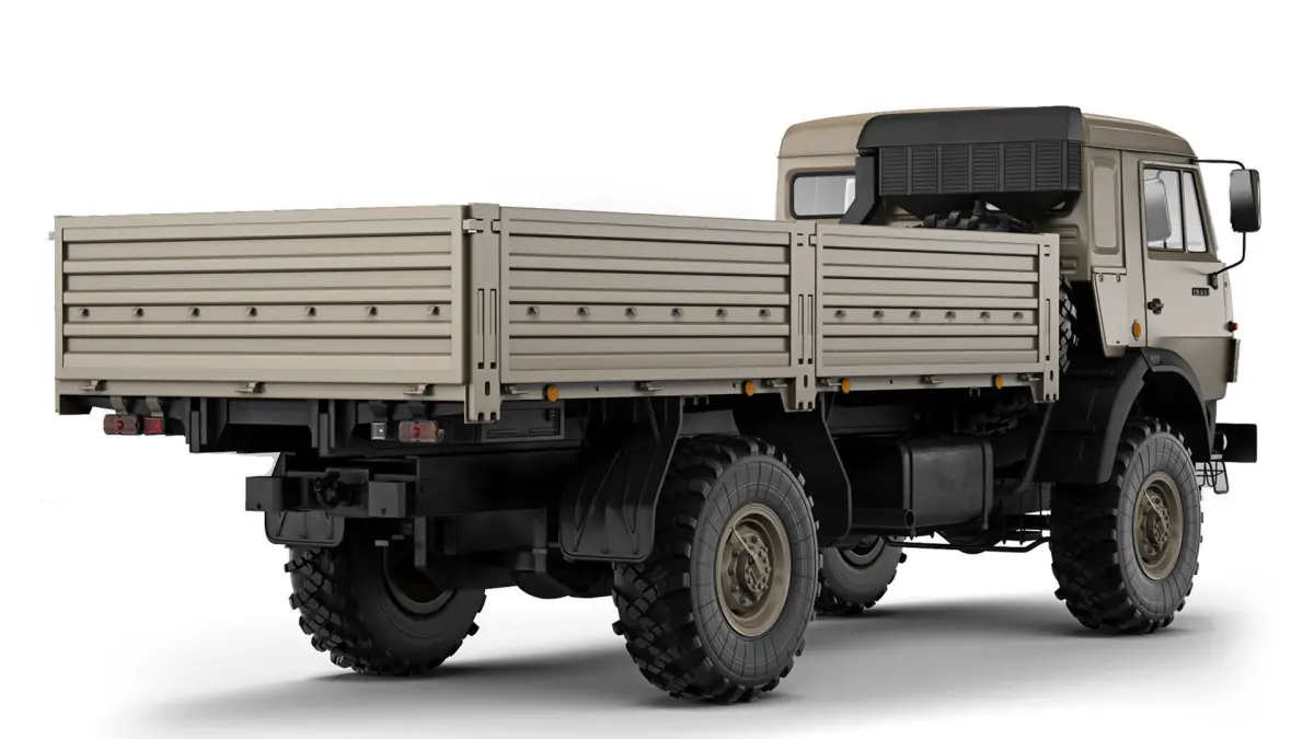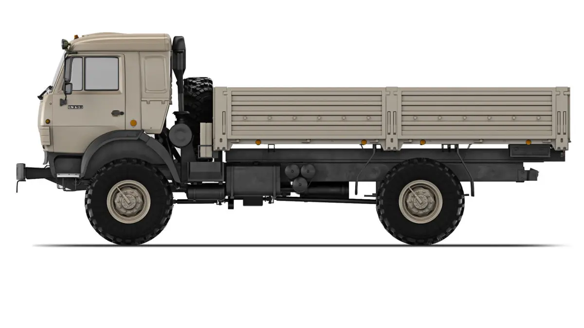 KAMAZ-4350 is a Russian medium-tonnage truck with increased cross-country ability. The main elements are prepared for TurboSmooth smoothing (2 Iteration). The body elements and wheels are worked out. The interior is conditional.