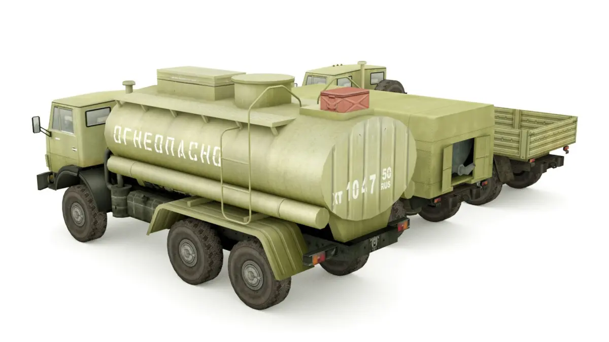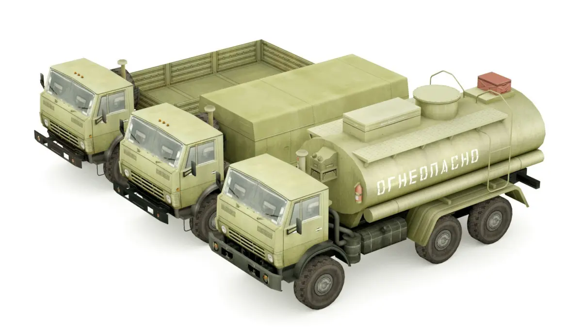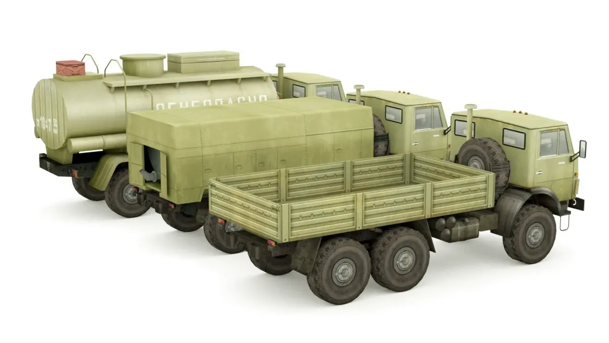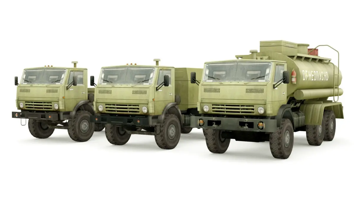 This is 3 Low-poly military KAMAZ 5350 Truck units collection