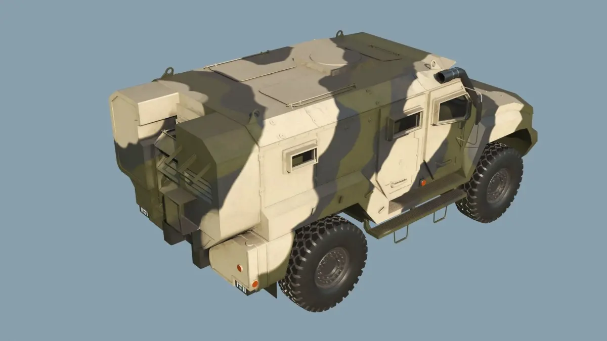 Multipurpose off-road armored car, army SUV with 4x4 wheel formula. It is equipped with a combined ceramic armor protection, and armored steel under it. Gross weight - more than 15 tons, maximum speed - 105 km / h