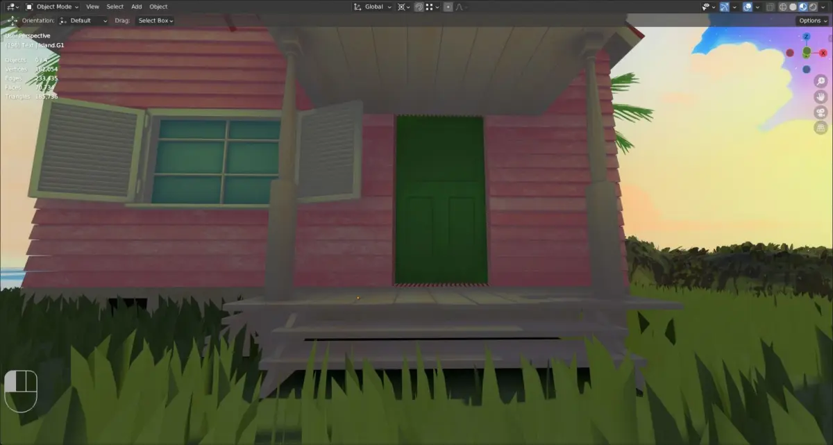 “Master Roshi’s house. It is located on a small island far out in the ocean, with sunset & a night sky full of stars