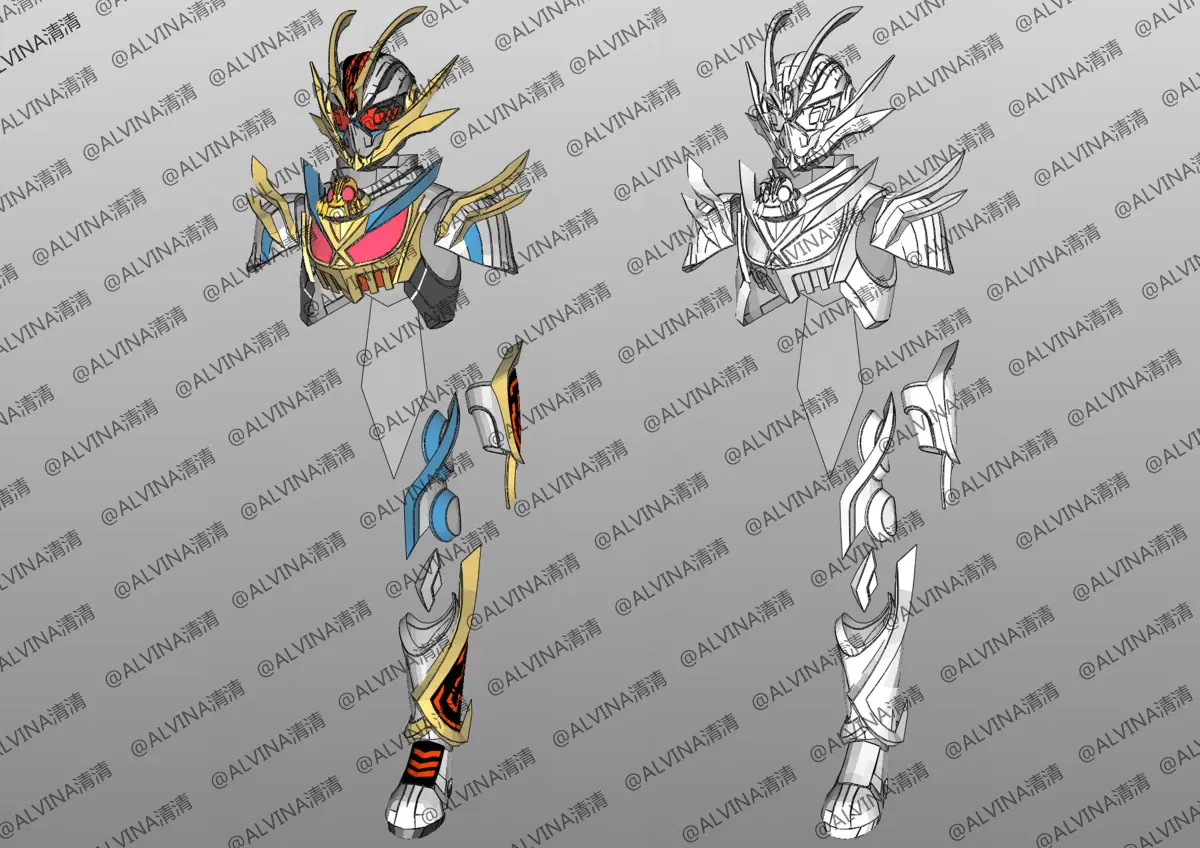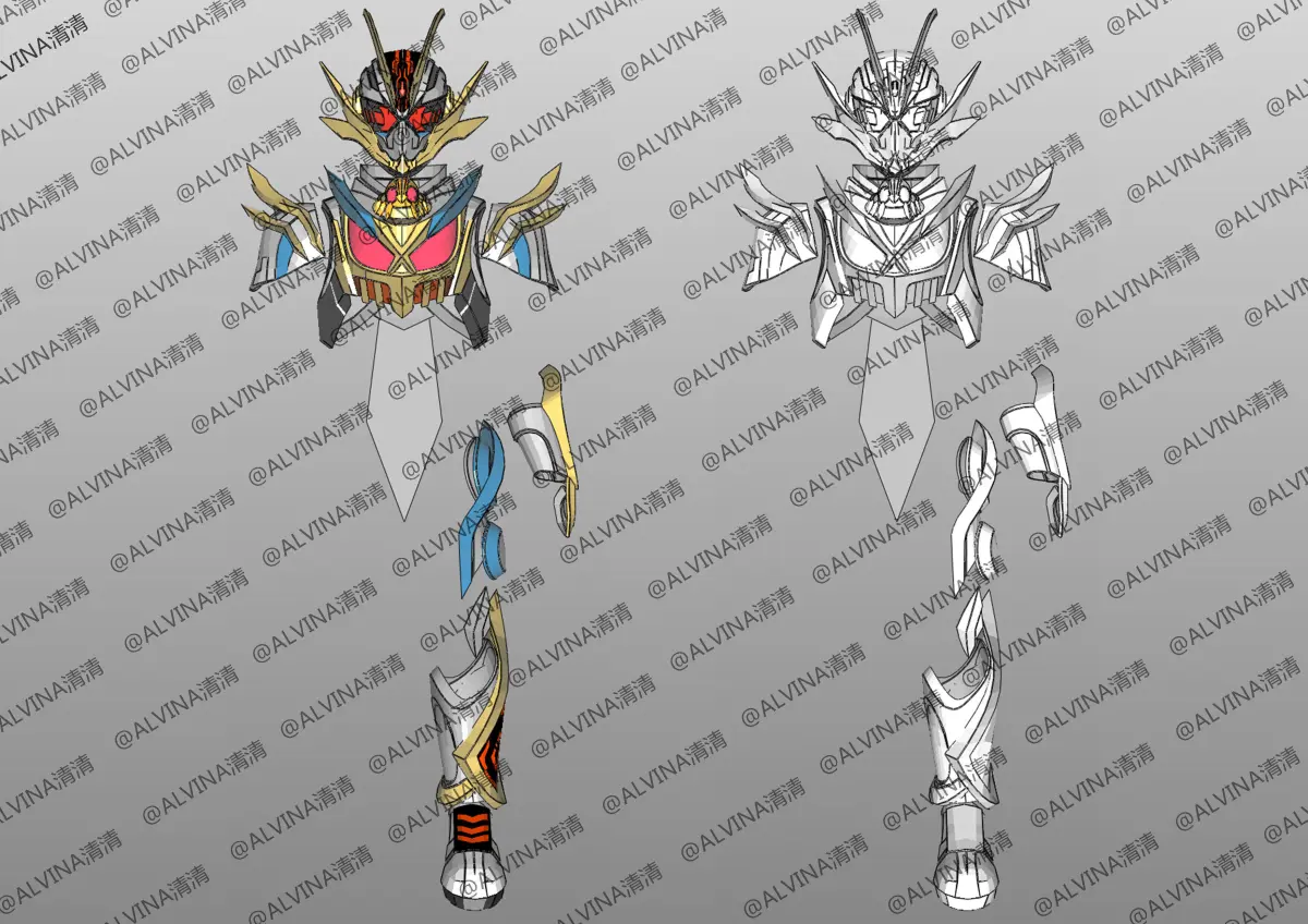 Kamen Rider Platina Gotcherd Armor - DIY Cosplay Pepakura Foam Template, PDO file not encrypted! After decompression, you can freely adjust the size and modify the texture!