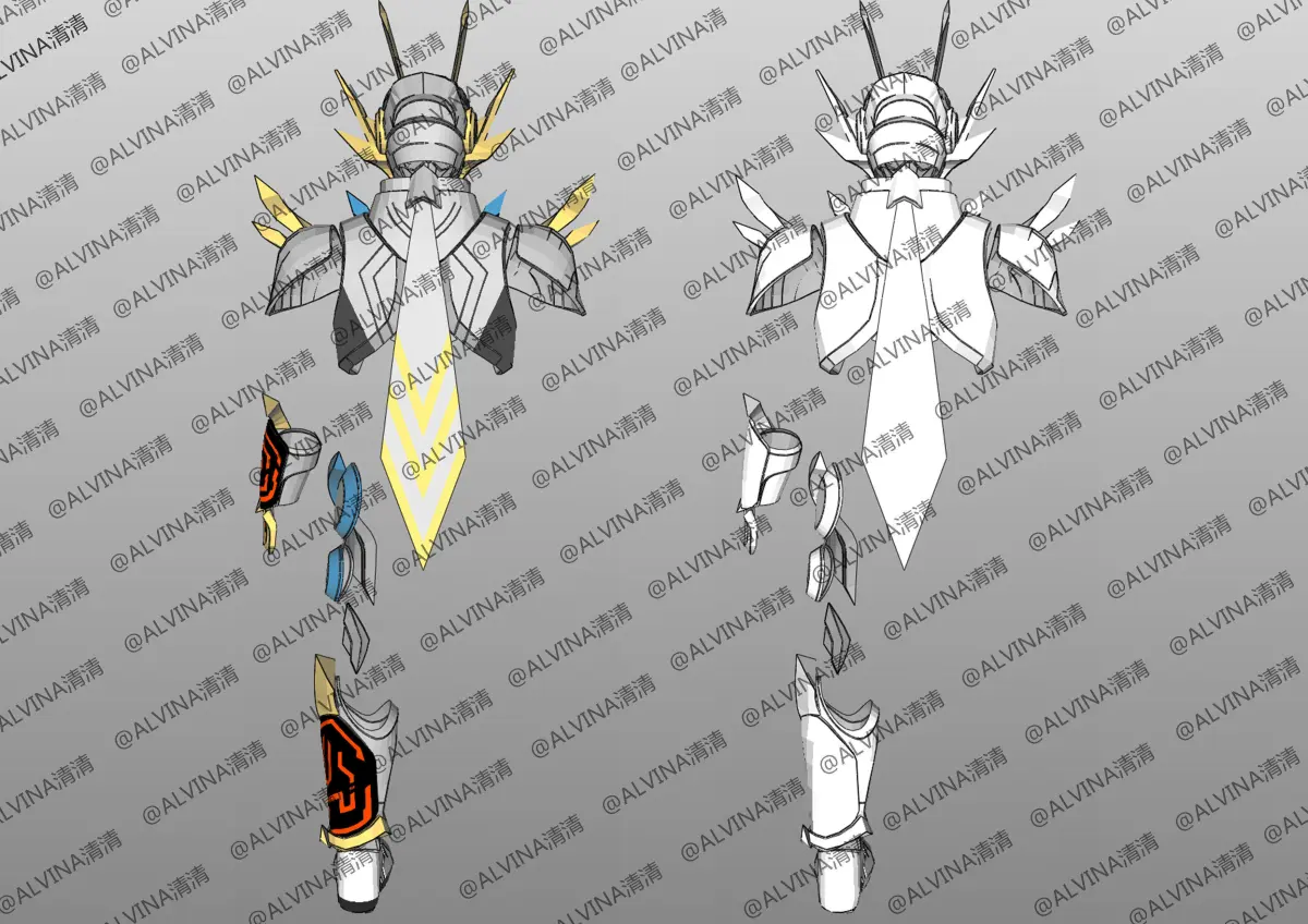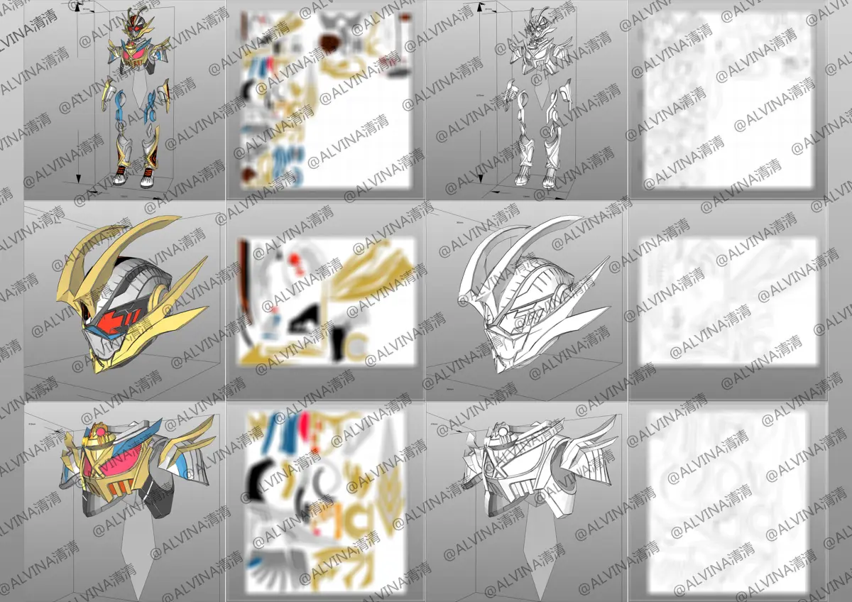 ---Regarding the drawings - there are a total of 9 file format components in the compressed package (including OBJ files+Foam/EVA unfolded pattern PDO files). The PDO file format can only be opened in the Pepakura Designer application and can be found on the display image. You can view that each component has been split and laid out, and it can be used directly.